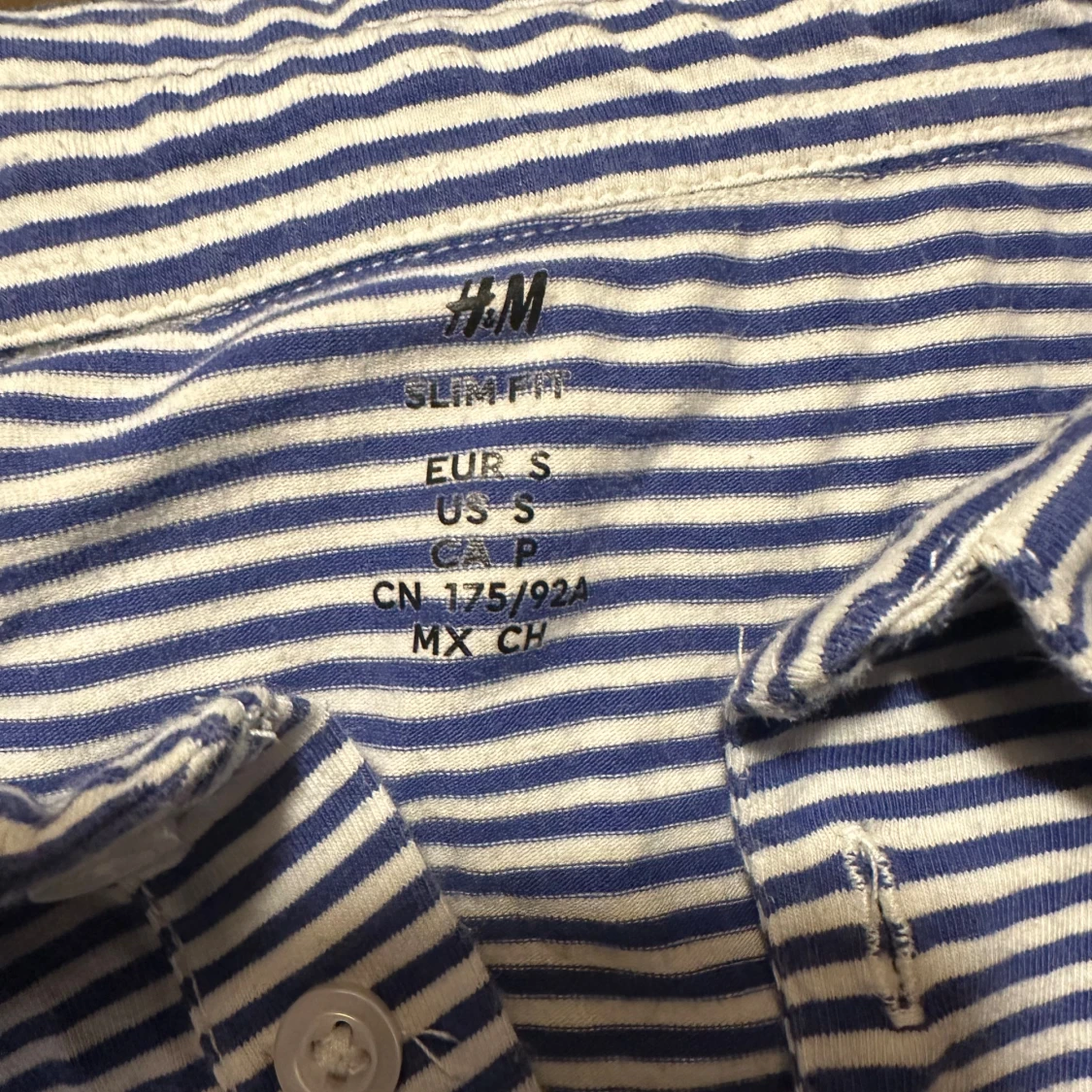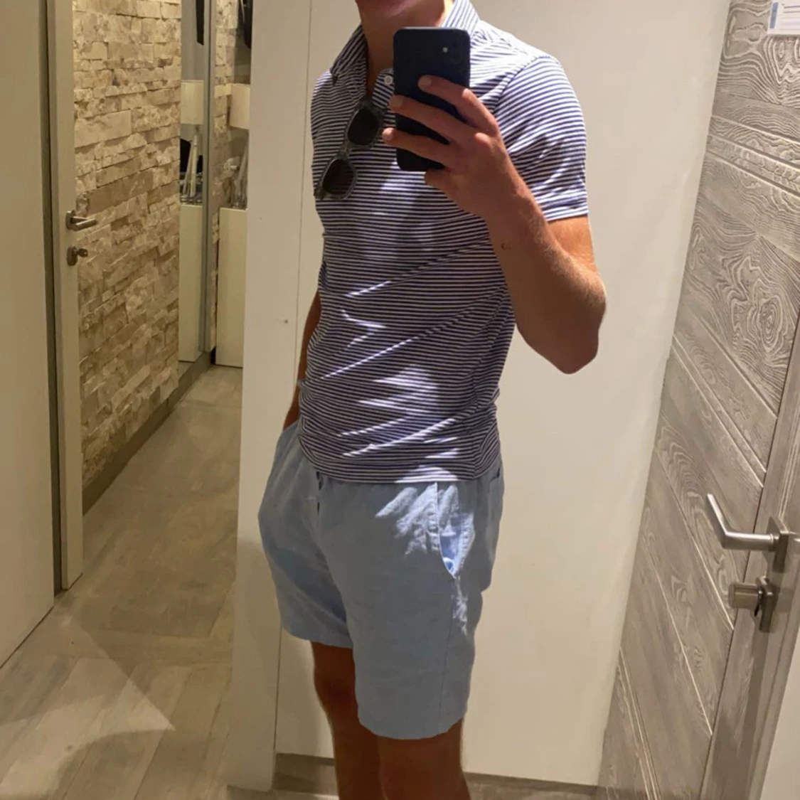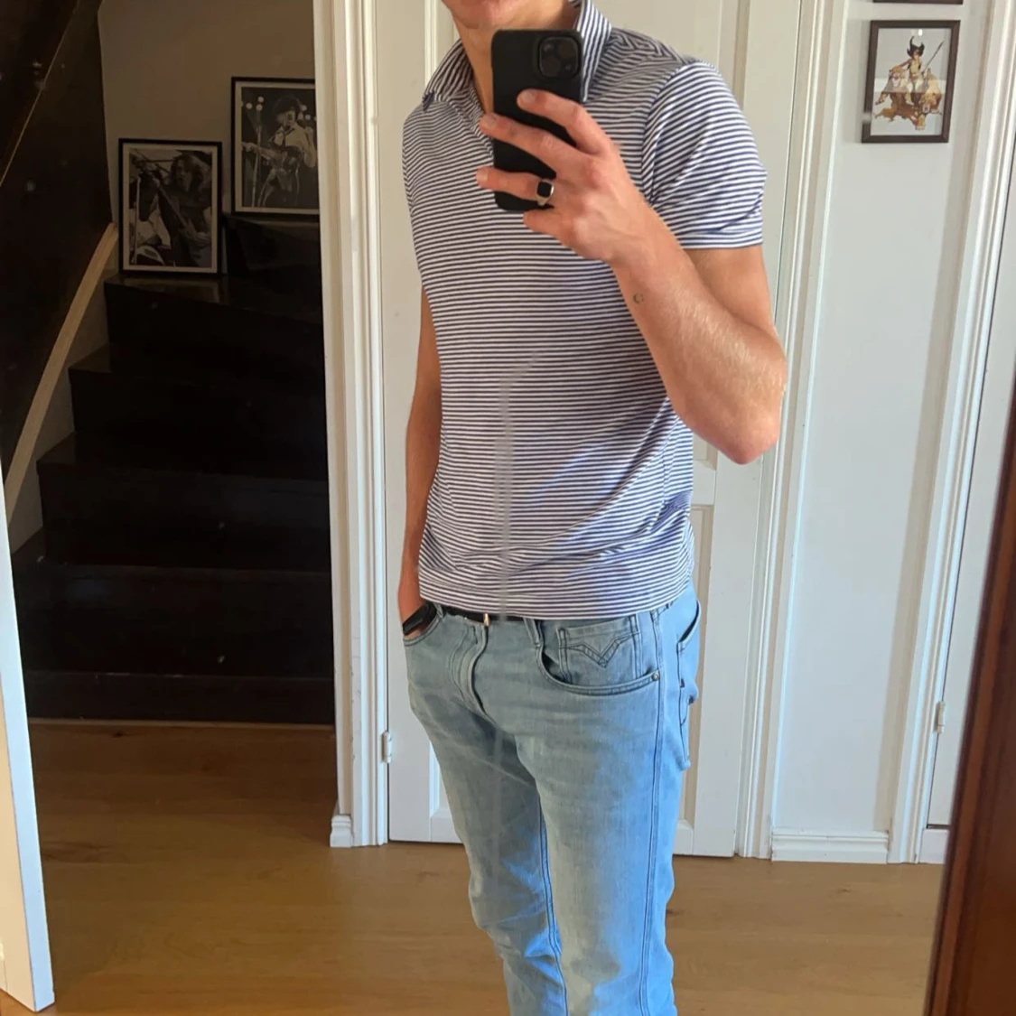 Fräsch blåvit-randig piké. Lätt att styla med layers, men även snygg ensam. Jag på bilden är 186 och den sitter lite för litet på mig.