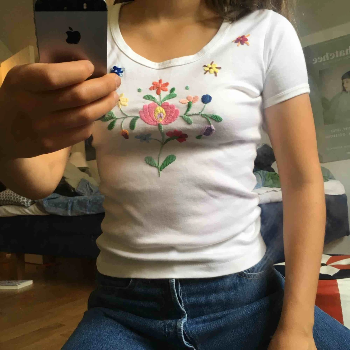 Superfin vintagetshirt i bomull med folkloristiskt broderi. Fri frakt!