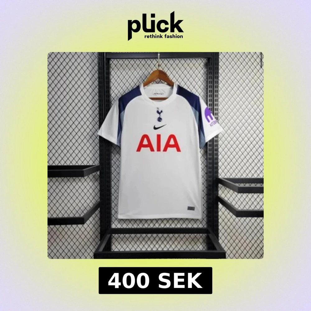 Säljer en officiell Tottenham Hotspur fotbollströja från Nike. Tröjan är vit med marinblå detaljer på axlarna och har röd AIA-logga på bröstet. Materialet är lätt och andas, perfekt för träning eller match. Klassisk rund hals och korta ärmar.