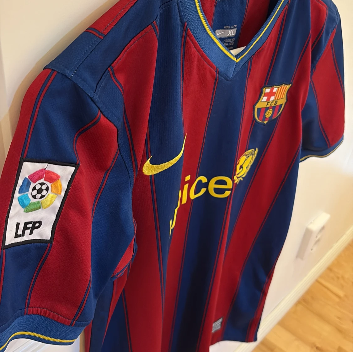 Klassisk FC Barcelona fotbollströja med blå och röda vertikala ränder, officiellt klubbmärke och Nike-logga på bröstet. Unicef-tryck på framsidan och LFP-märke på ärmen. Kortärmad modell i lätt och ventilerande material.