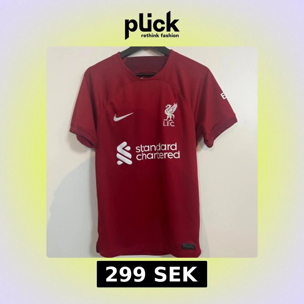 Liverpool FCs officiella matchtröja i mörkröd färg med vita logotyper och tryck. Klassisk rund hals, korta ärmar och tillverkad i lätt, ventilerande funktionsmaterial. Nike-logga på bröstet och sponsortryck framtill.