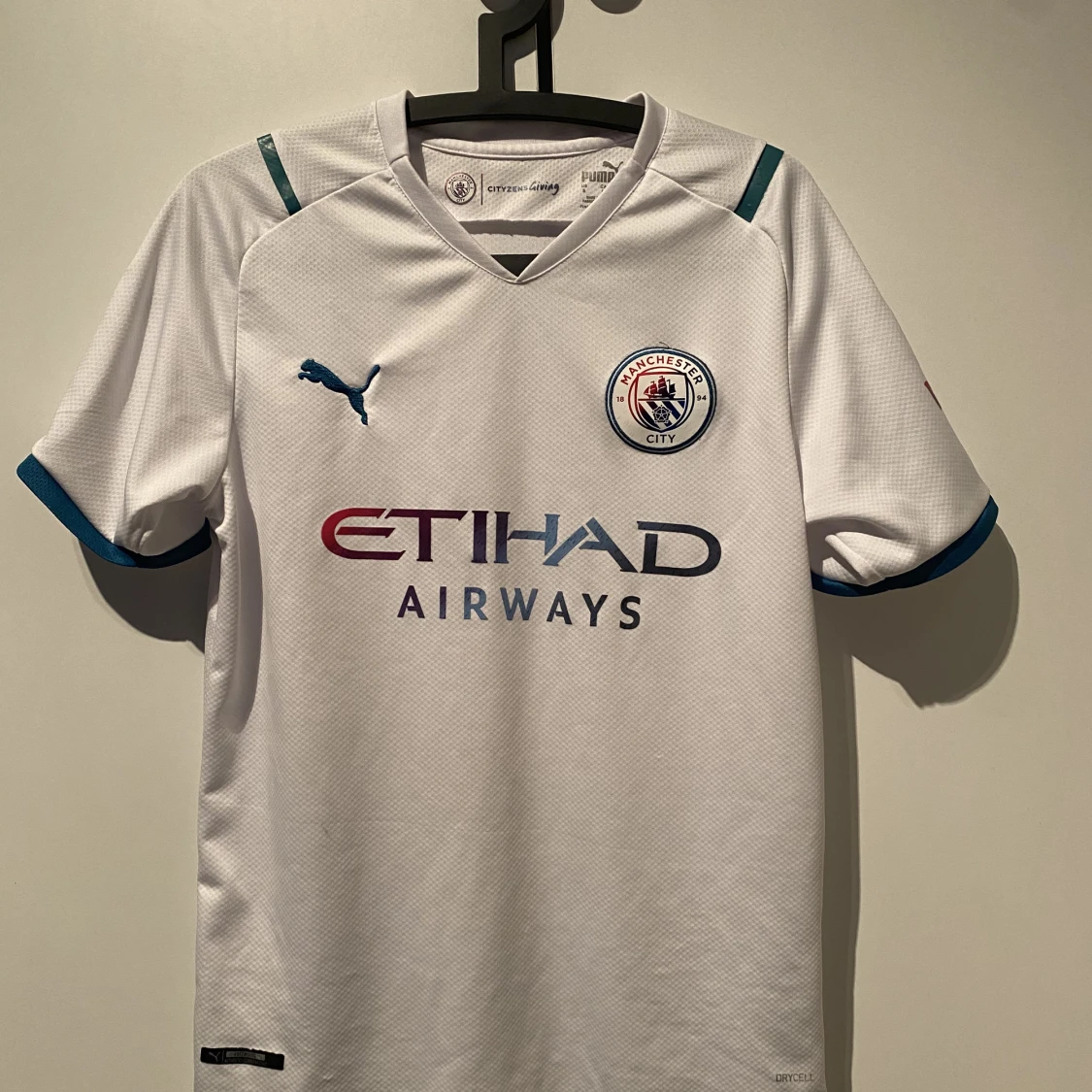 Man city borta tröja den är i jätte bra skick jag har bara haft på mig den bara några gånger det är S men passar som M