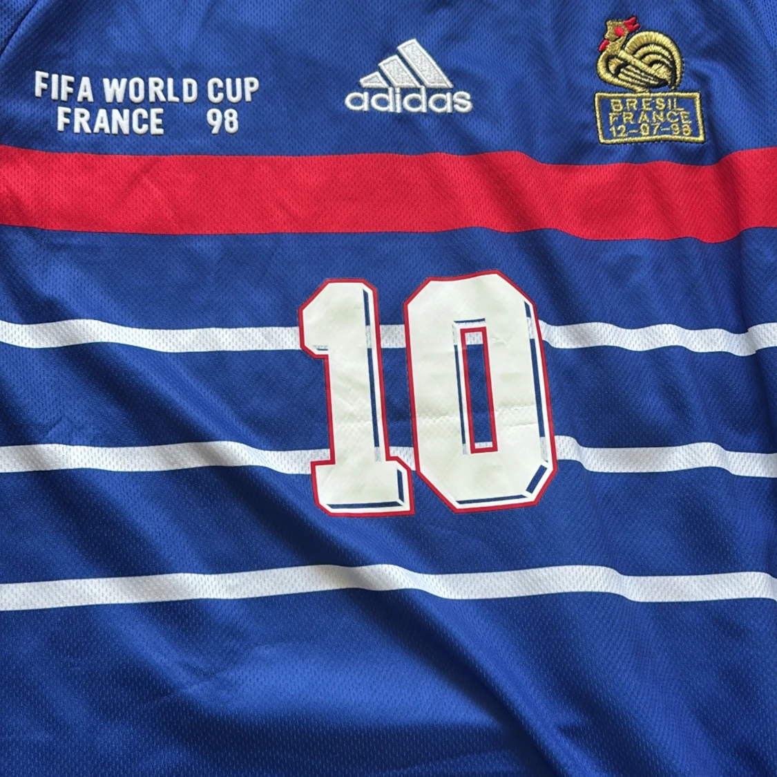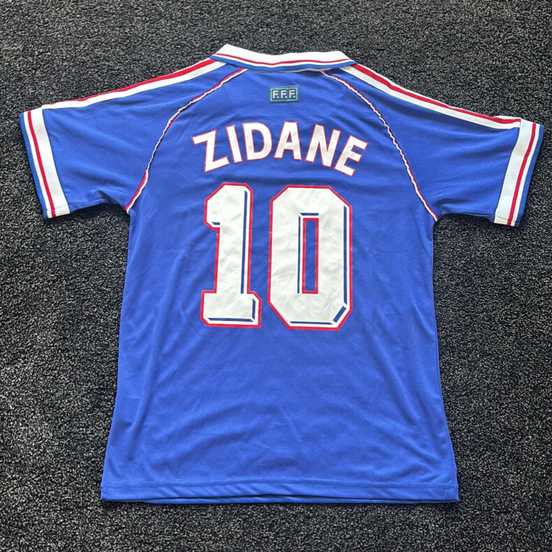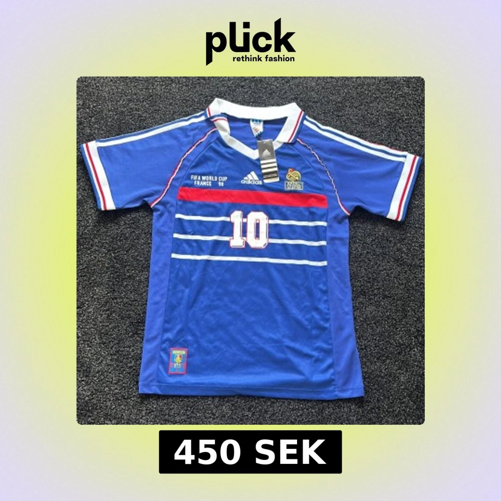 Klassisk blå Frankrike fotbollströja från VM 1998 med Zidane 10 på ryggen. Tröjan är helt ny med taggar kvar. Säljer den då den inte har kommit till användning.
