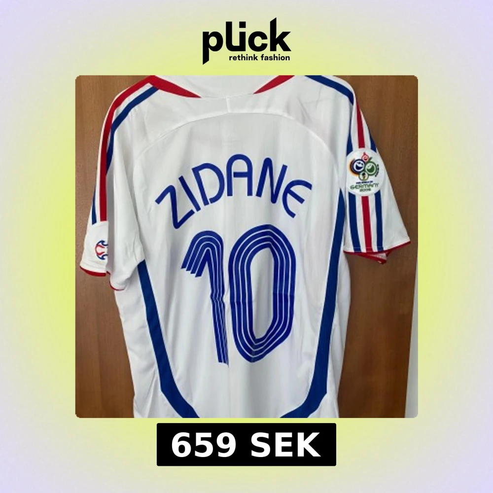 Säljer helt oanvänd ikonisk fransk landslagströja från VM-finalen 2006 med Zidane 10 på ryggen. Tröjan är vit med blå och röda detaljer, broderat FFF-emblem och Adidas-logga. Korta ärmar, lätt och ventilerande material, klassisk passform. Perfekt för samlare eller fotbollsfans.