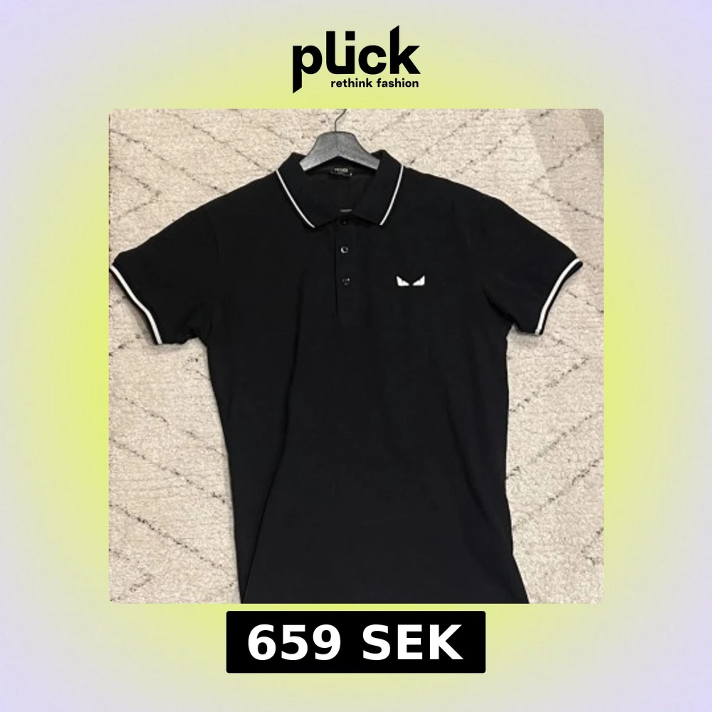 Svart fendi piké med dom välkända ögonen på bröstet. Skit snygg och perfekt för sommaren för dig som gillar stilrena pikéer som samtidigt sticker ut. Lite fläckig på bilden men tvättar såklart. Jätte bra skick. Pris går som vanligt att diskutera!!