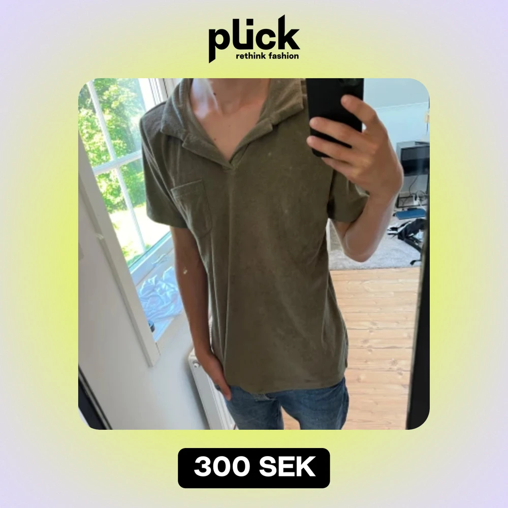 Säljer en olivgrön kortärmad tröja från st&Studios. Den är i s fast passar upp till 180 för är själv 177. Den har en avslappnad passform med en liten bröstficka och en klassisk krage. Perfekt för en casual look! Ny pris 800 Mitt pris 300