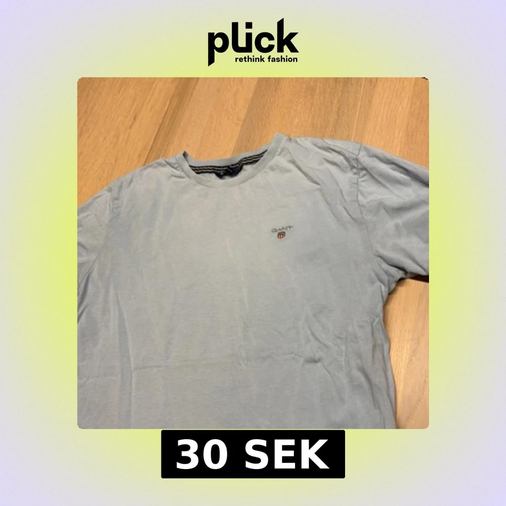 Ljusblå t-shirt från GANT med klassisk rund hals och liten broderad logga på bröstet. Tillverkad i mjuk bomull och har en enkel, stilren design. Perfekt för en avslappnad look. Har några små blekta fläckar se bild man tänker bara på dem om man tittar noga