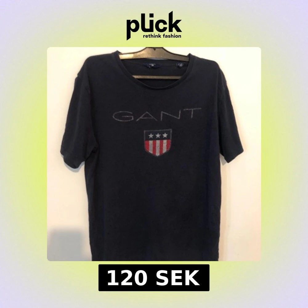 Snygg mörkblå t-shirt från GANT med klassiskt tryck på bröstet och ett emblem med stjärnor och rödvita ränder. Rund hals och korta ärmar. Mjuk bomullskvalitet som känns skön mot huden. Perfekt för dig som gillar stilrena och sportiga plagg.