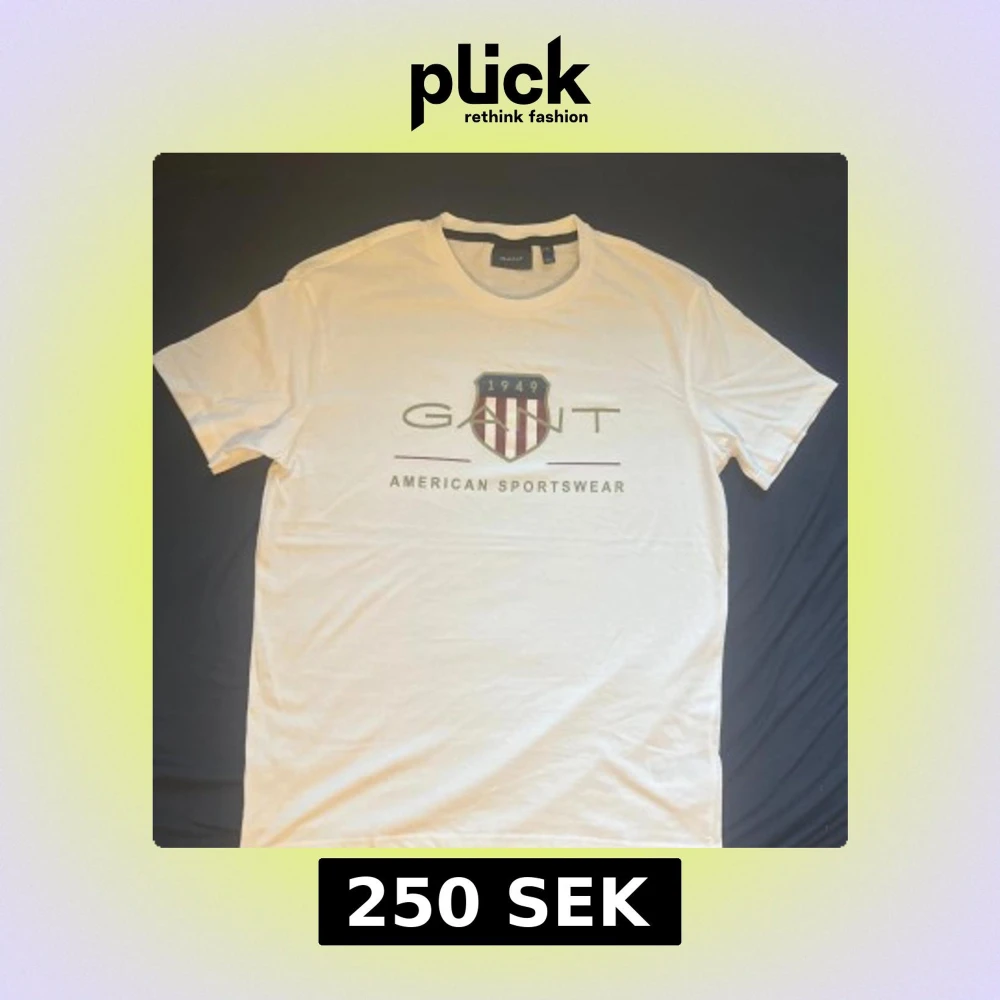 Vit t-shirt från GANT i bomull med klassiskt tryck framtill med sköld och texten 'American Sportswear'. Rund halsringning och korta ärmar. Perfekt för en clean och sportig look.