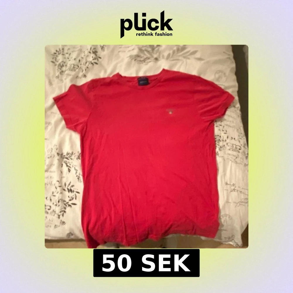 Röd t-shirt från GANT i regular fit, storlek S. Klassisk rund hals och korta ärmar. Liten broderad GANT-logga på bröstet. Mjuk och skön bomull som passar perfekt till jeans eller shorts. Enkel och stilren design utan mönster.