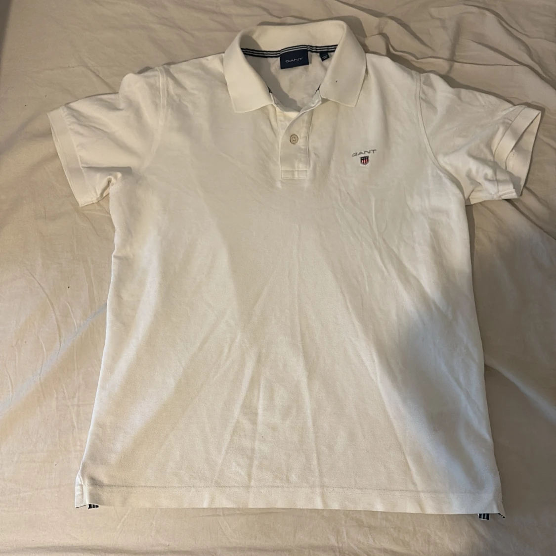Klassisk vit pikétröja från GANT med korta ärmar och krage. Tröjan har broderad GANT-logga på bröstet och knappar vid halsen. Tillverkad i mjuk bomull, perfekt för en clean och stilren look.