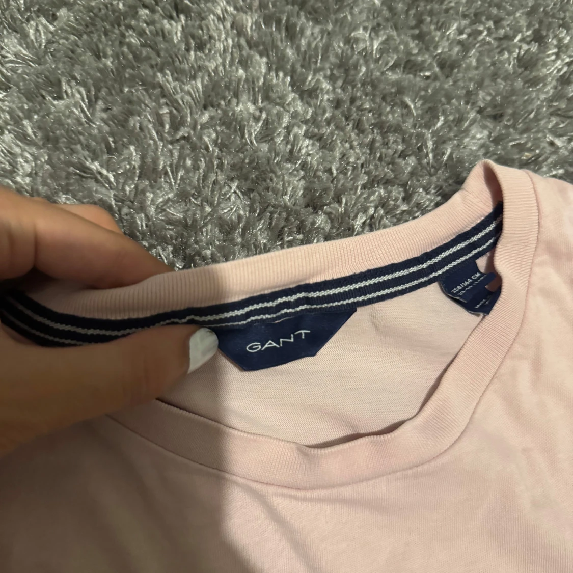 Snygg ljusrosa t-shirt från GANT med diskret logga på bröstet. Klassisk rund hals och korta ärmar, perfekt för en chill och stilren look. Mjuk och skön bomull som känns nice mot huden. Enkel att matcha med jeans eller shorts. Storlek 158-164 men är samma som en XS