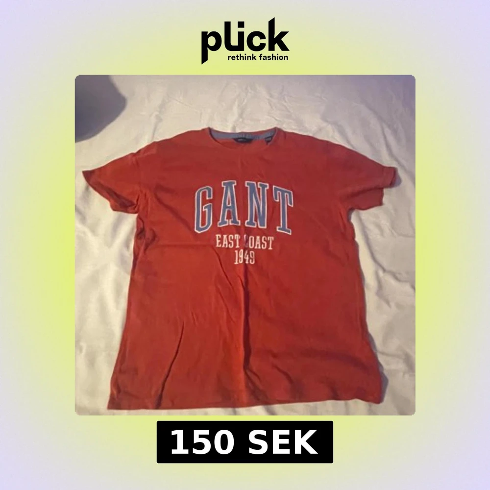 Säljer en röd t-shirt från GANT med trycket 'EAST COAST 1949' på framsidan. Den har en klassisk rund hals och korta ärmar. Perfekt för en avslappnad stil.