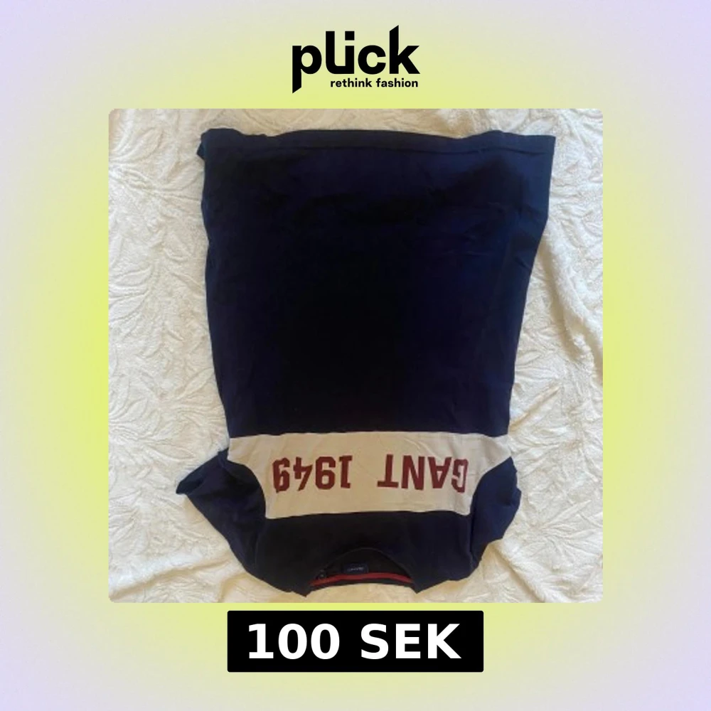 Säljer en snygg mörkblå tröja från Gant med beige och röd detalj. Tröjan har texten 'GANT 1949' tryckt över bröstet. Perfekt för en stilren och avslappnad look.