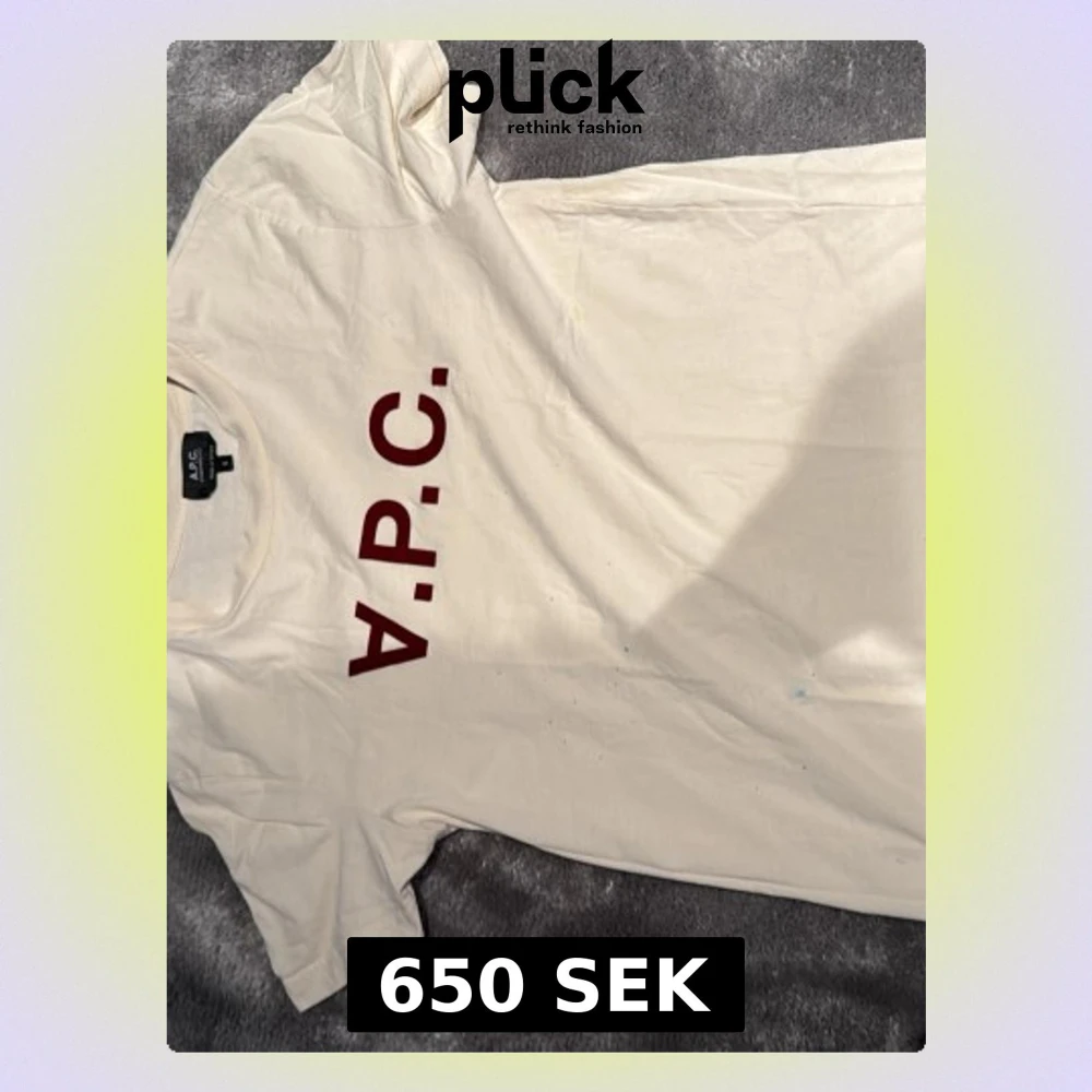 Säljer en stilren vit t-shirt från A.P.C. med röd logotyp tryckt snett över bröstet då den är för liten för mig. Klassisk passform med rund hals och korta ärmar. Tillverkad i mjuk bomull som känns skön mot huden. Perfekt för dig som gillar minimalistisk design. Blå skvätt färg har kommit på den men syns knappast. Storlek d men passar m