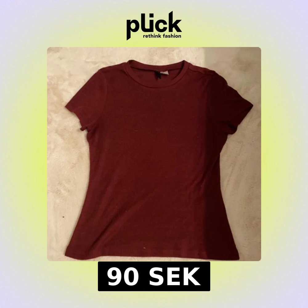 Säljer en enkel och stilren vinröd t-shirt med rund halsringning. Perfekt för en avslappnad look. Passar bra till jeans eller kjol. Genomskinlig ❤️