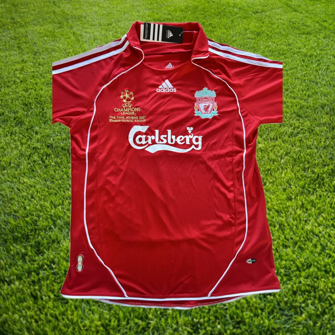 Nyskick/helt oanvänd Steven Gerrard tröja från UCL Finalen 2007. Denna tröja har blivit ikonisk, i år (säsongen 25/26) kör Liverpool till och med en retrodesign inspirerad av denna. Tveka inte att höra av er för fler frågor och bilder!