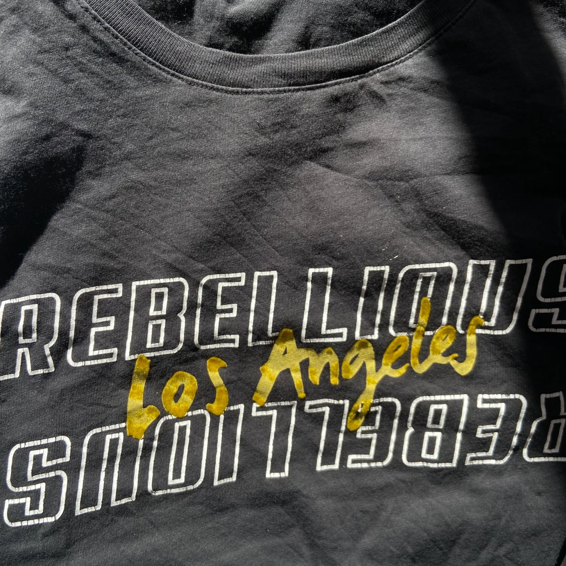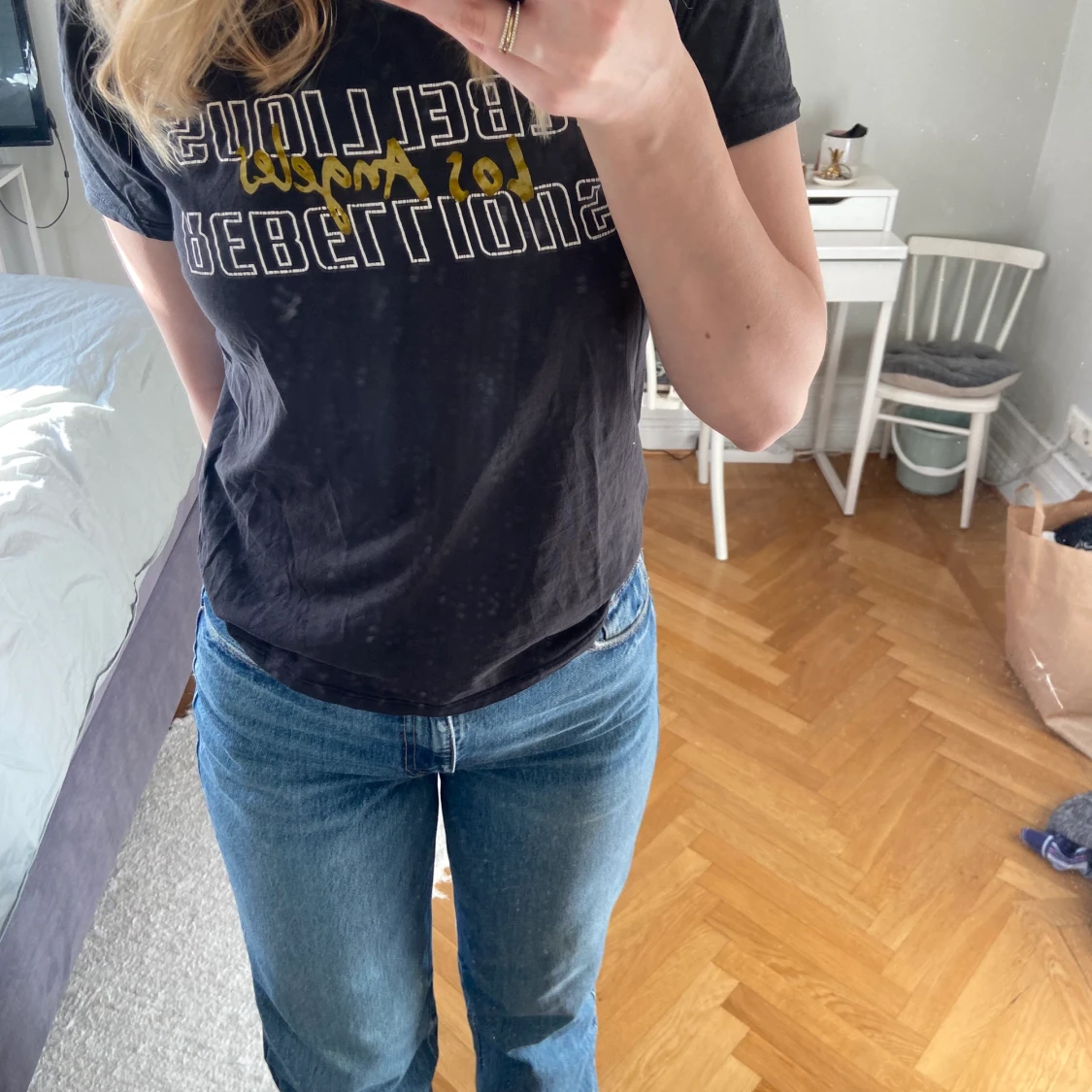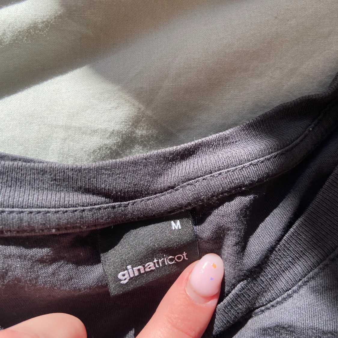 T-shirt från GinaTricot med tryck! Färgen är svart/grå och passformen stämmer överens med storleken✨