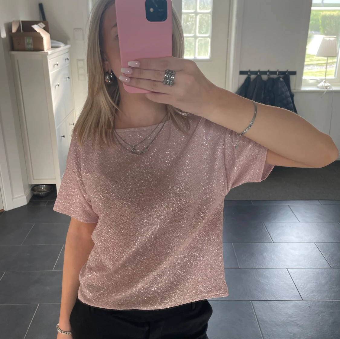glittrig rosa t-shirt topp frĂ„n ginatricot, knappt anvĂ€nd i fint skickđđđŒ