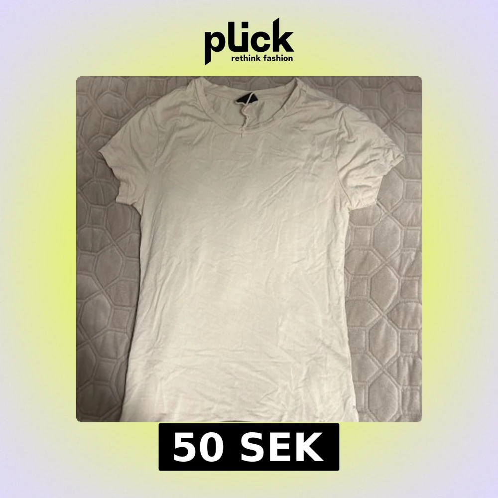 En enkel och stilren vit/beige t-shirt från Gina Tricot i storlek S. T-shirten har rund halsringning och korta ärmar. Materialet känns mjukt och lätt,