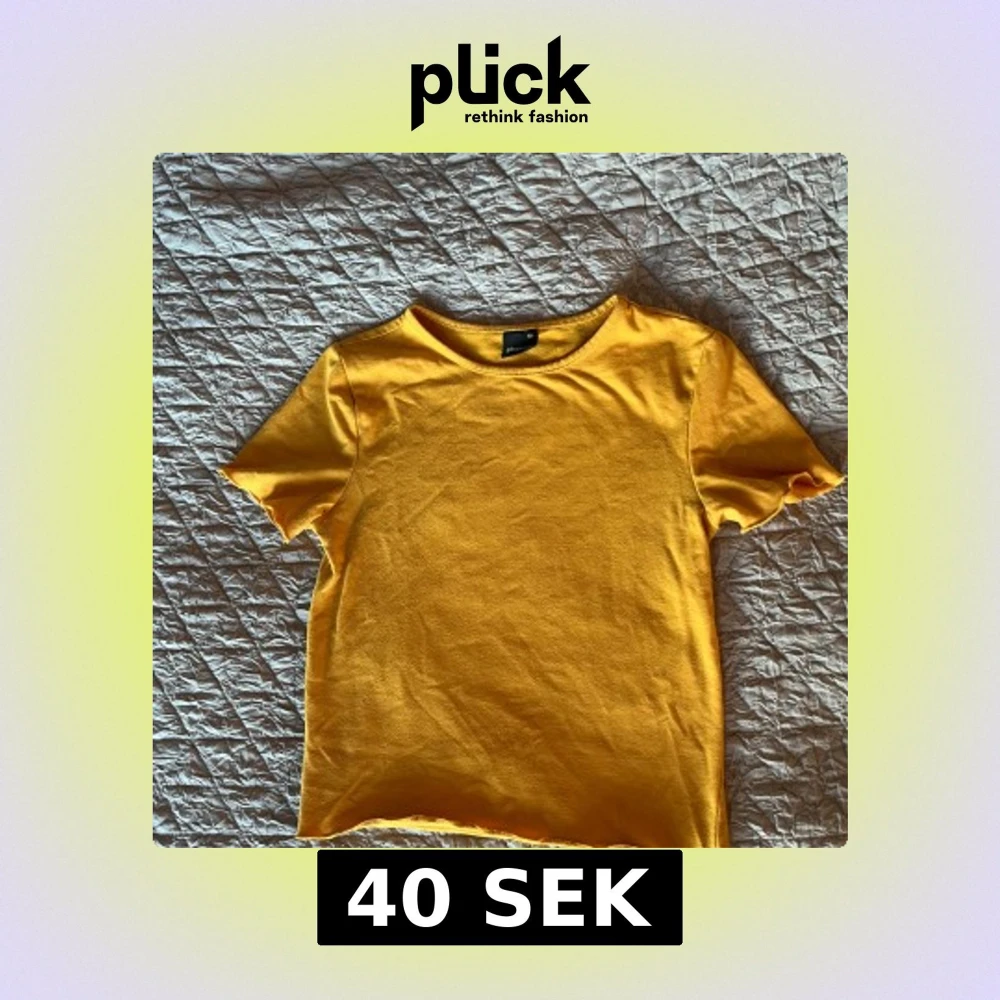Snygg gul t-shirt från Gina Tricot i storlek XS. Modellen har rund halsringning och korta ärmar med lätt vågad kant. Materialet är mjuk bomull som känns skönt mot huden. Perfekt för dig som gillar färg och enkel stil. Kort i modellen