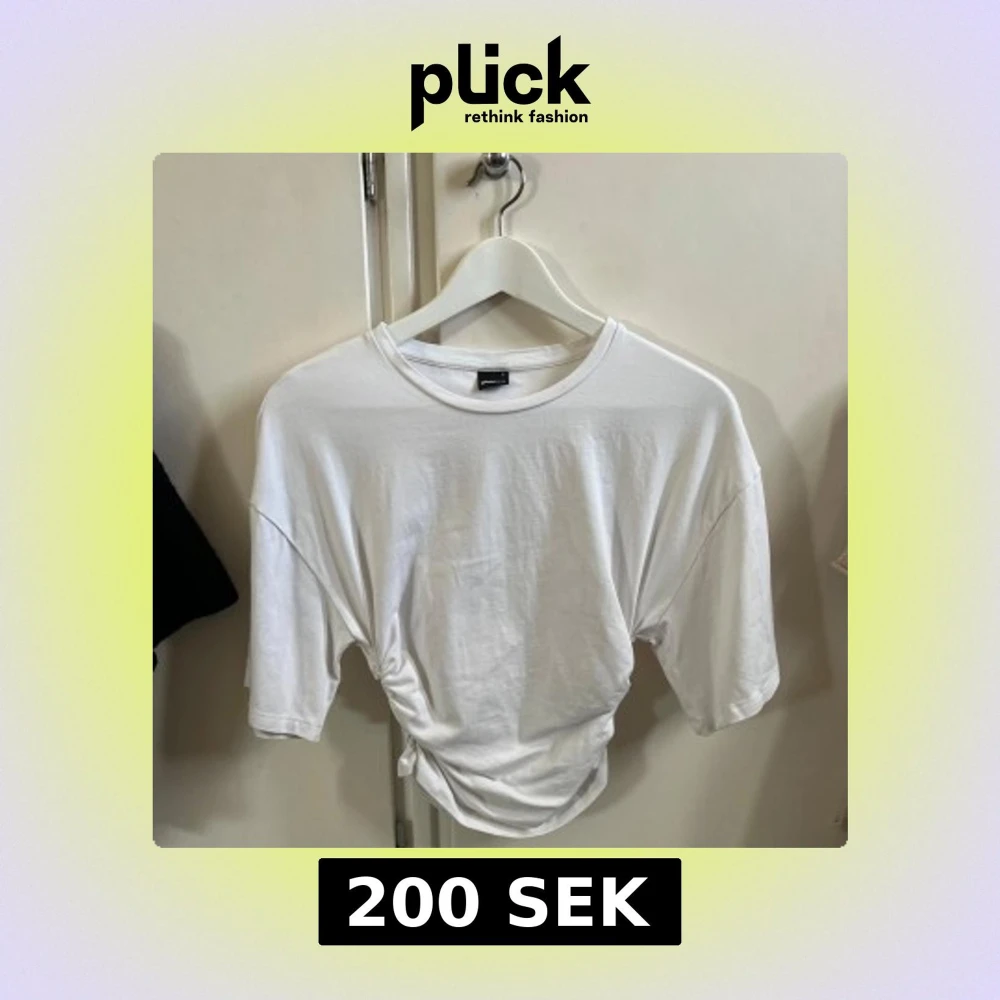 Vit t-shirt i bomull från Gina Tricot med korta ärmar och cool snörningsdetalj i sidan. Avslappnad passform och rund halsringning, perfekt till jeans eller kjol.