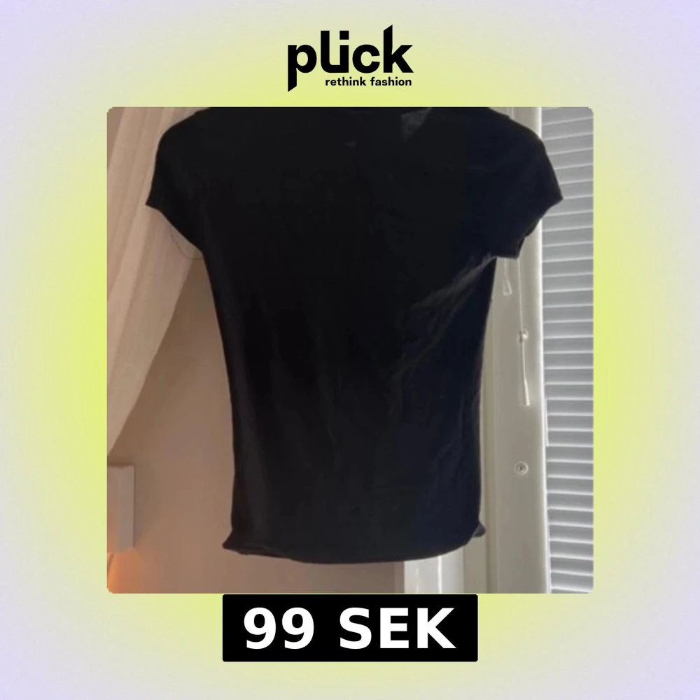 En enkel svart t-shirt med rund halsringning och korta ärmar. Perfekt att matcha med jeans eller kjol för en clean look. Gjord i mjukt material som känns skönt mot huden.