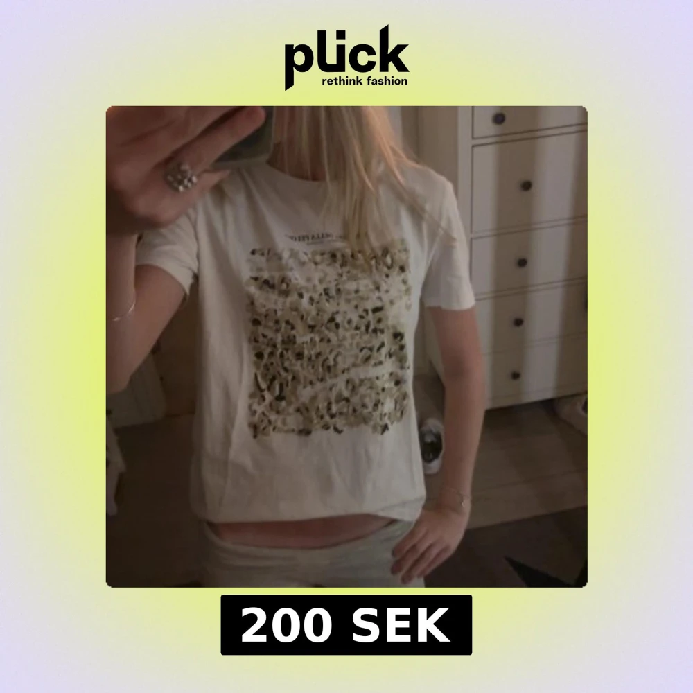 Snygg vit t-shirt med ett stort leopardmönstrat tryck framtill i beige, svart och guldiga toner. Klassisk passform med korta ärmar och rund halsringning. Perfekt för dig som vill sticka ut lite extra med ett coolt print. Skriv för fler bilder