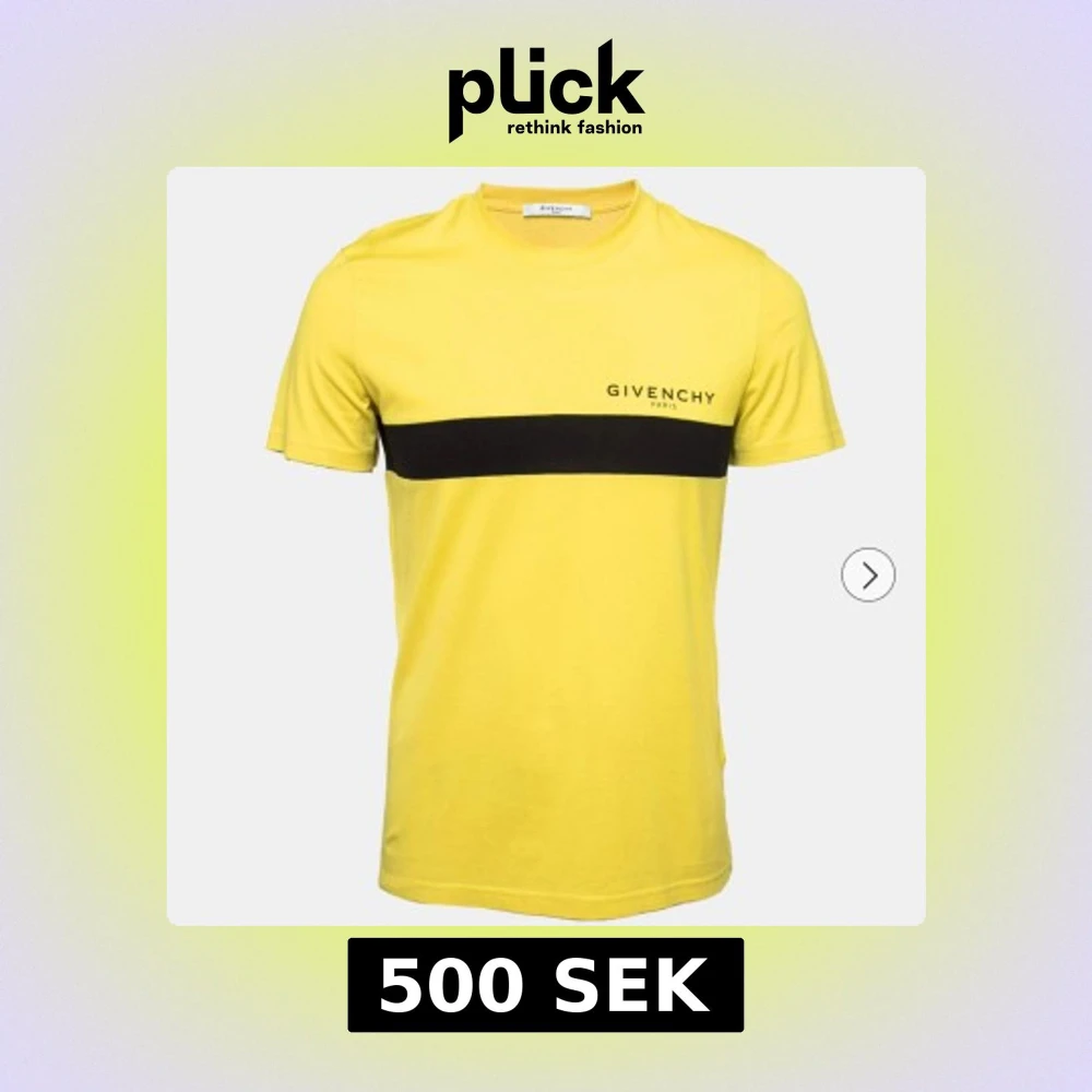 Snygg gul t-shirt från Givenchy i storlek S T-shirten är Äkta! Köpt på NK i Göteborg, T-shirten har svart horisontell rand framtill och stor logga på ryggen. Perfekt inför sommaren!!