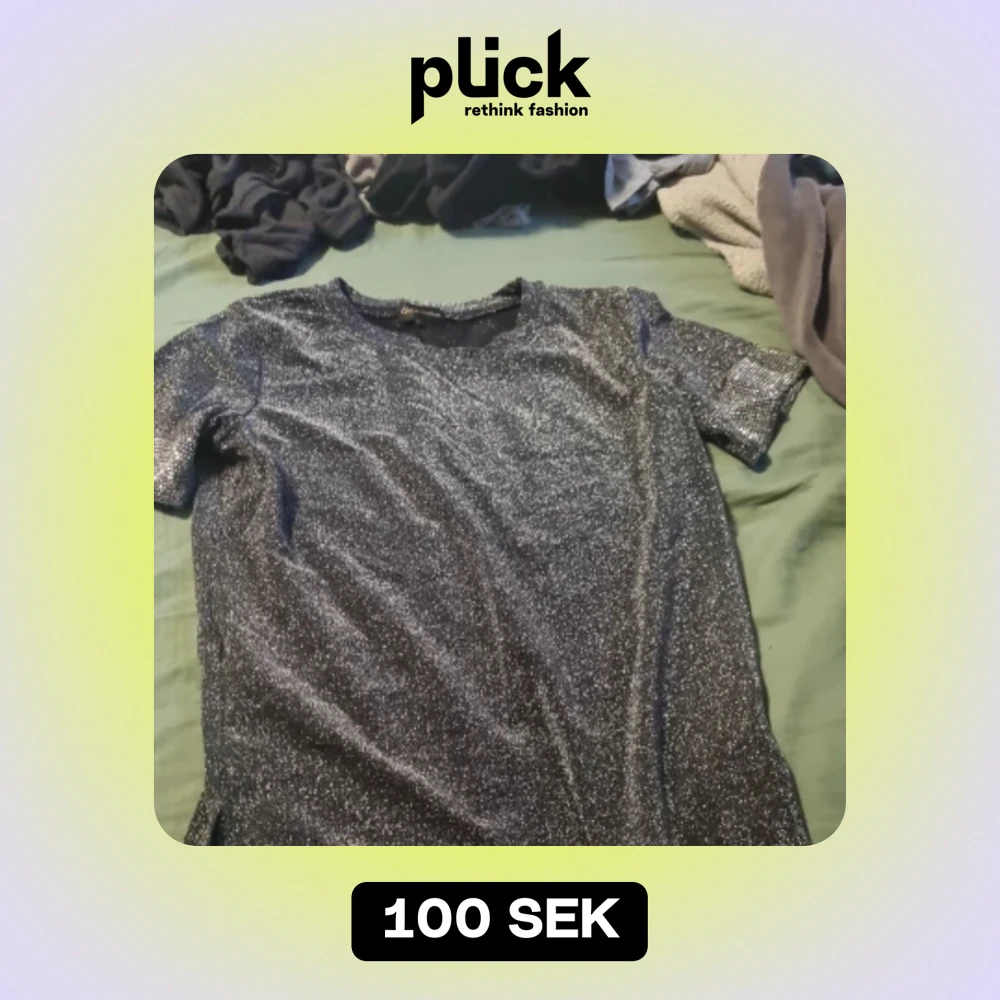 Glittrig svart tröja i storlek S/M. Den har bra kvalitet och har blivit använd max 10 gånger. Katter finns i huset
