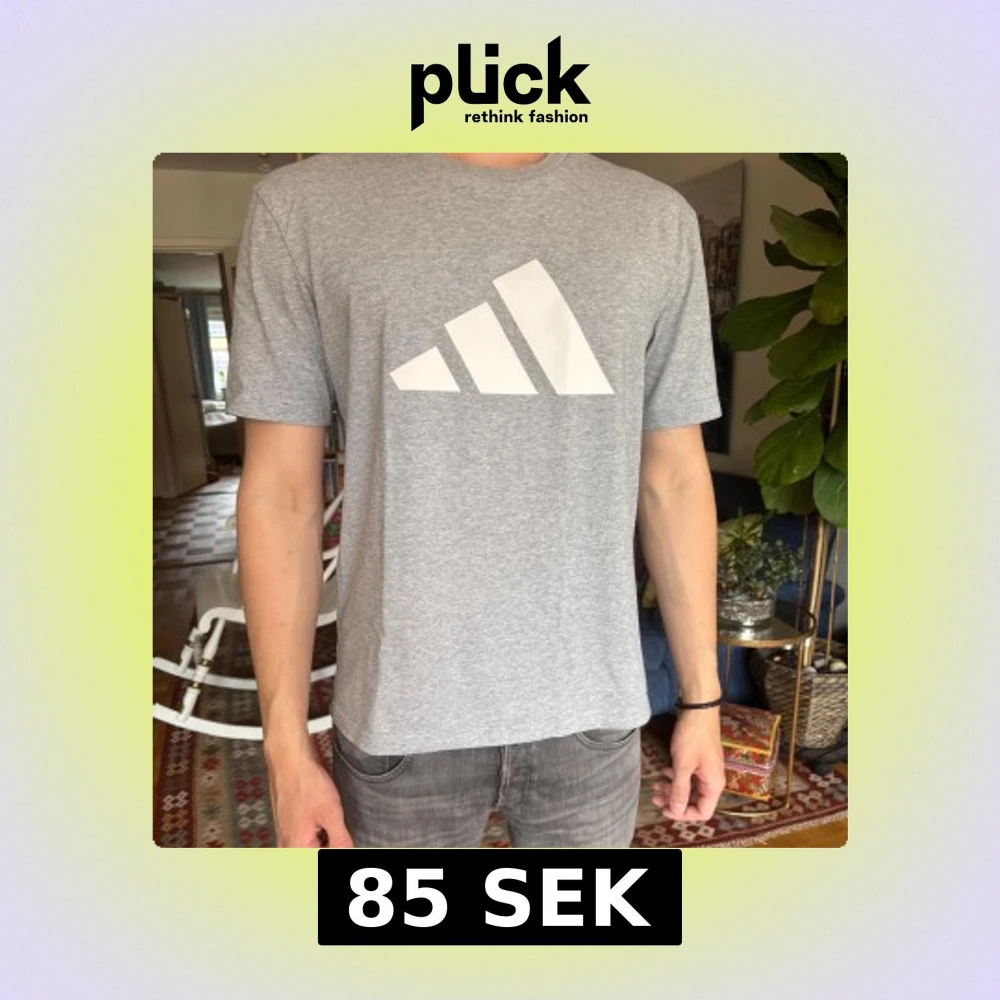 Snygg grå t-shirt från Adidas med stor vit logga på bröstet och liten logga i nacken. Klassisk passform och rund halsringning. Tillverkad i mjuk bomull som känns skön mot huden. Perfekt för dig som gillar sportig och clean stil.