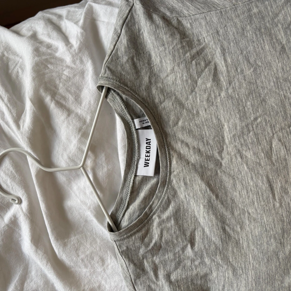 En enkel och stilren grå t-shirt från Weekday. Modellen är klassisk med rund halsringning och korta ärmar. Tillverkad i mjuk bomull som är skön mot huden. Den är bara skrynklig för den legat i en påse en stund😅