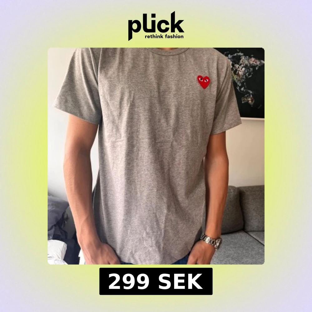Grå t-shirt från Comme des Garçons Play med det ikoniska röda hjärtat med ögon broderat på bröstet. Klassisk passform, rund hals och korta ärmar. Perfekt basic med en twist för dig som gillar streetstyle.