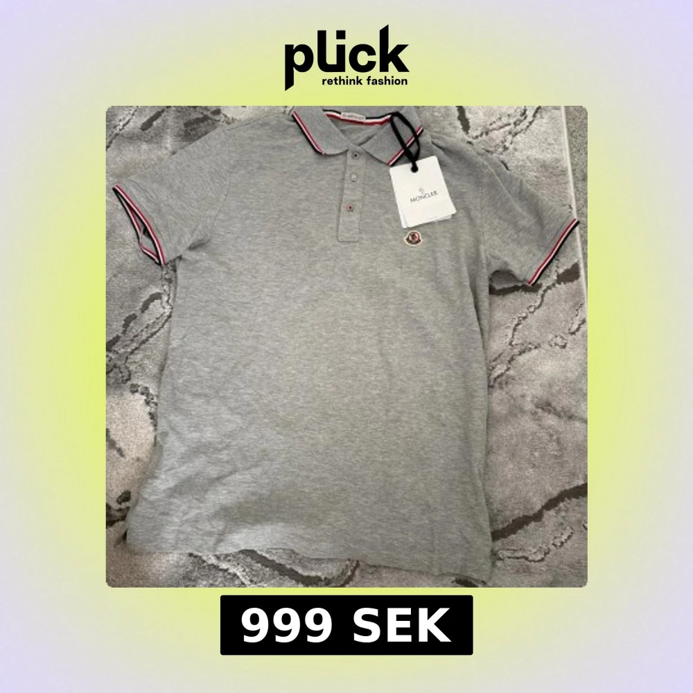 Snygg grå pikétröja från Moncler i bomull. Klassisk krage med röd, vit och marinblå rand, samt matchande detaljer på ärmsluten. Bröstet pryds av Monclers ikoniska logga. Perfekt för en clean och stilren look.