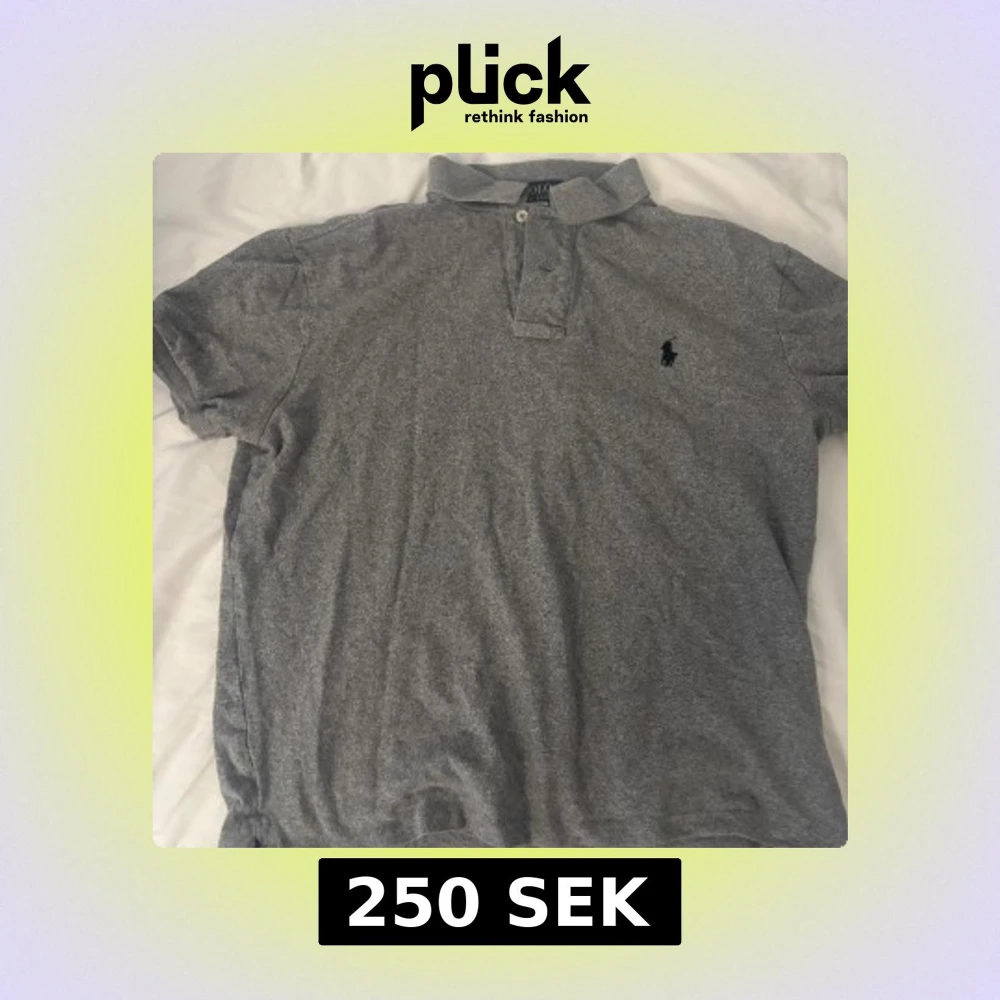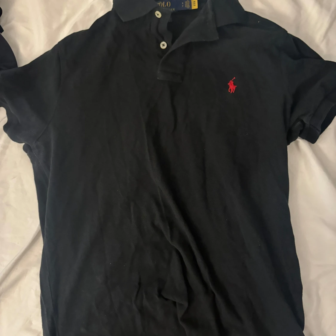 Två klassiska t-shirts från Polo Ralph Lauren, en i grått med mörkblå logga och en i svart med röd logga. Båda har korta ärmar, krage och knappar vid halsen. Materialet är mjuk bomull, perfekt för en chill och stilren look. 250 kr styck