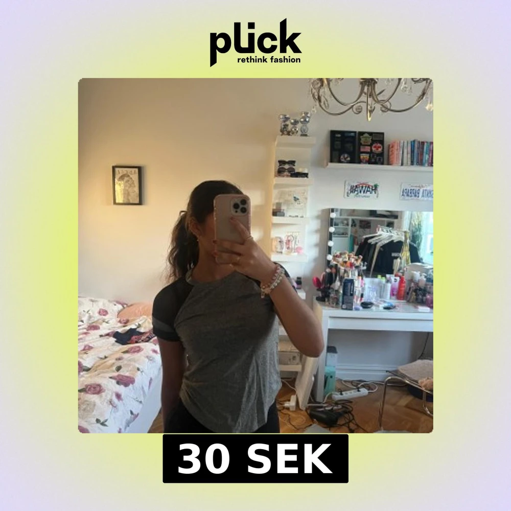 Säljer en stilren grå t-shirt med svarta ärmar. Perfekt för en avslappnad look. T-shirten har en rund hals och korta ärmar.