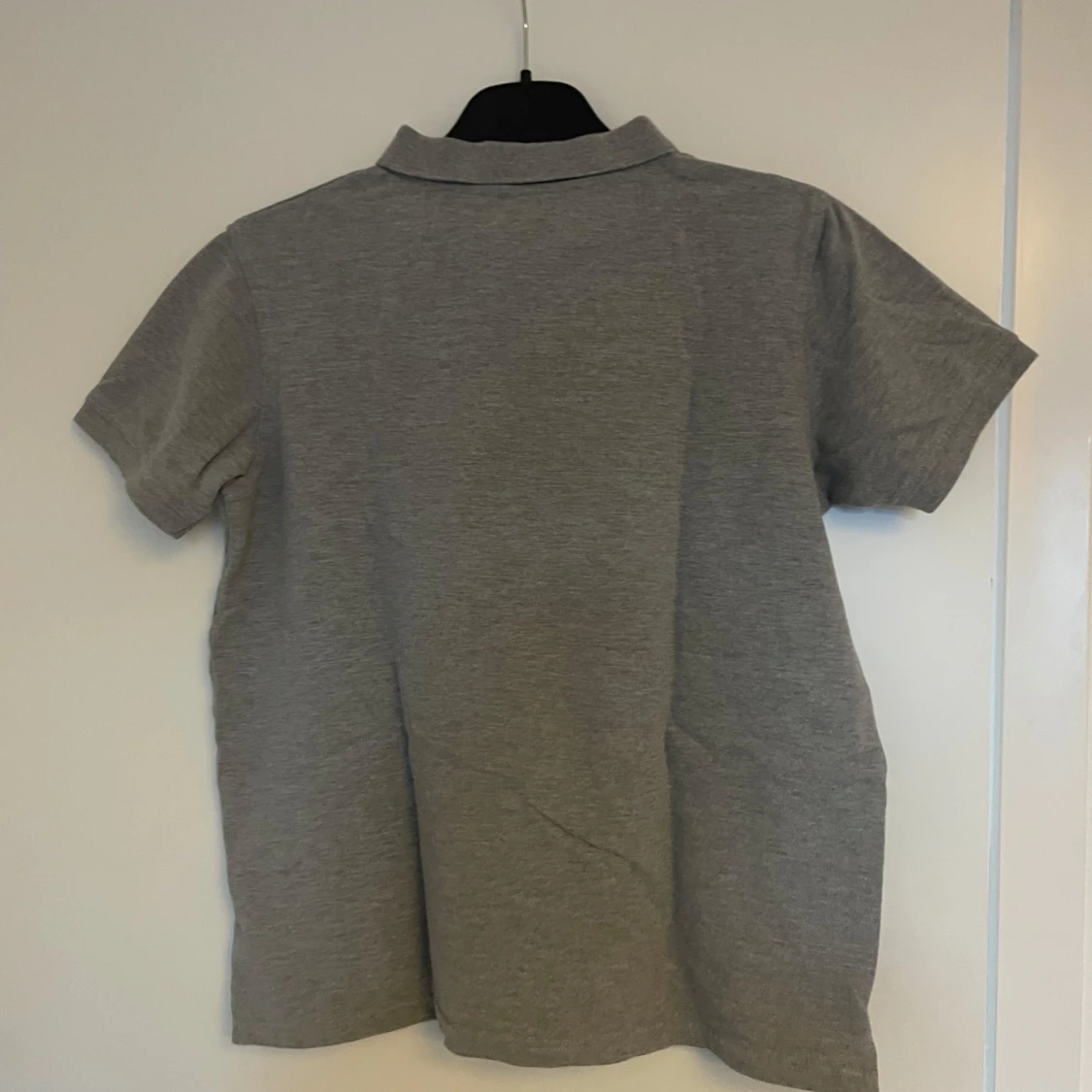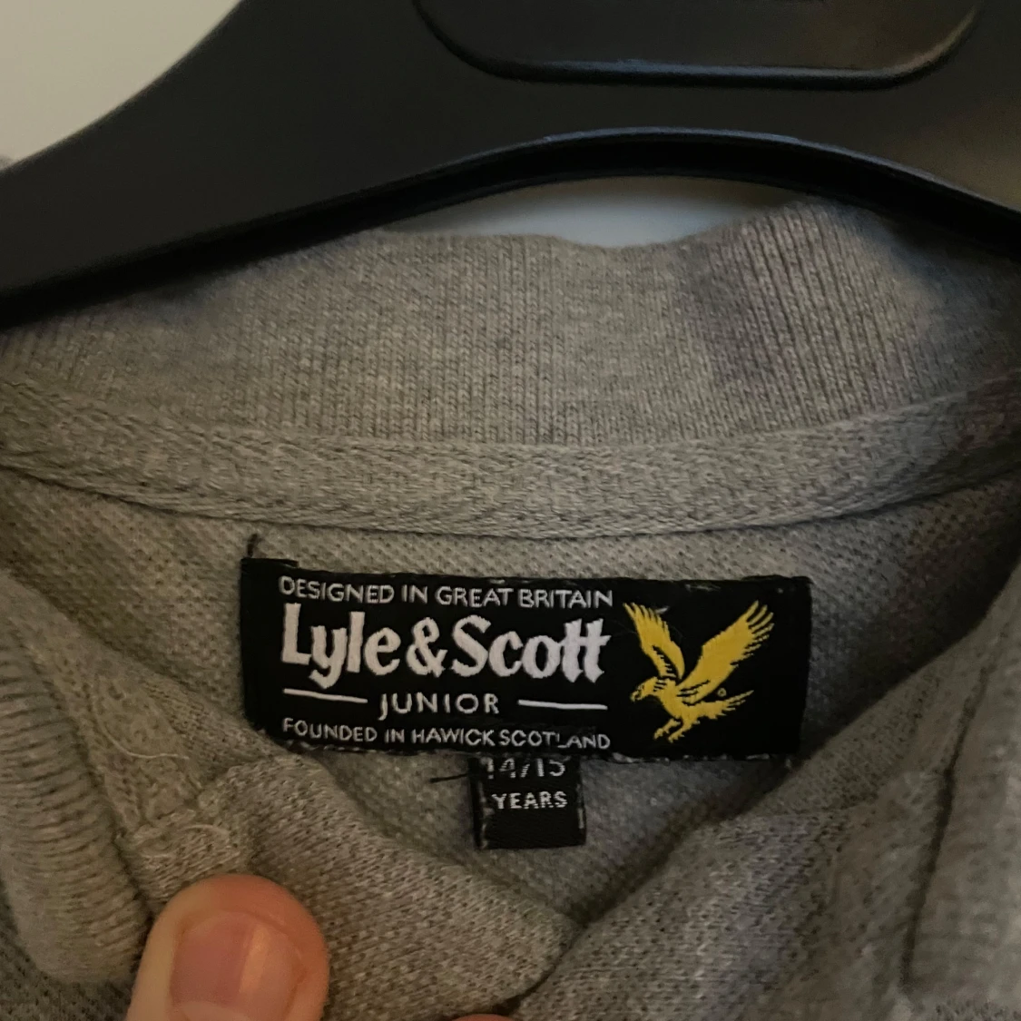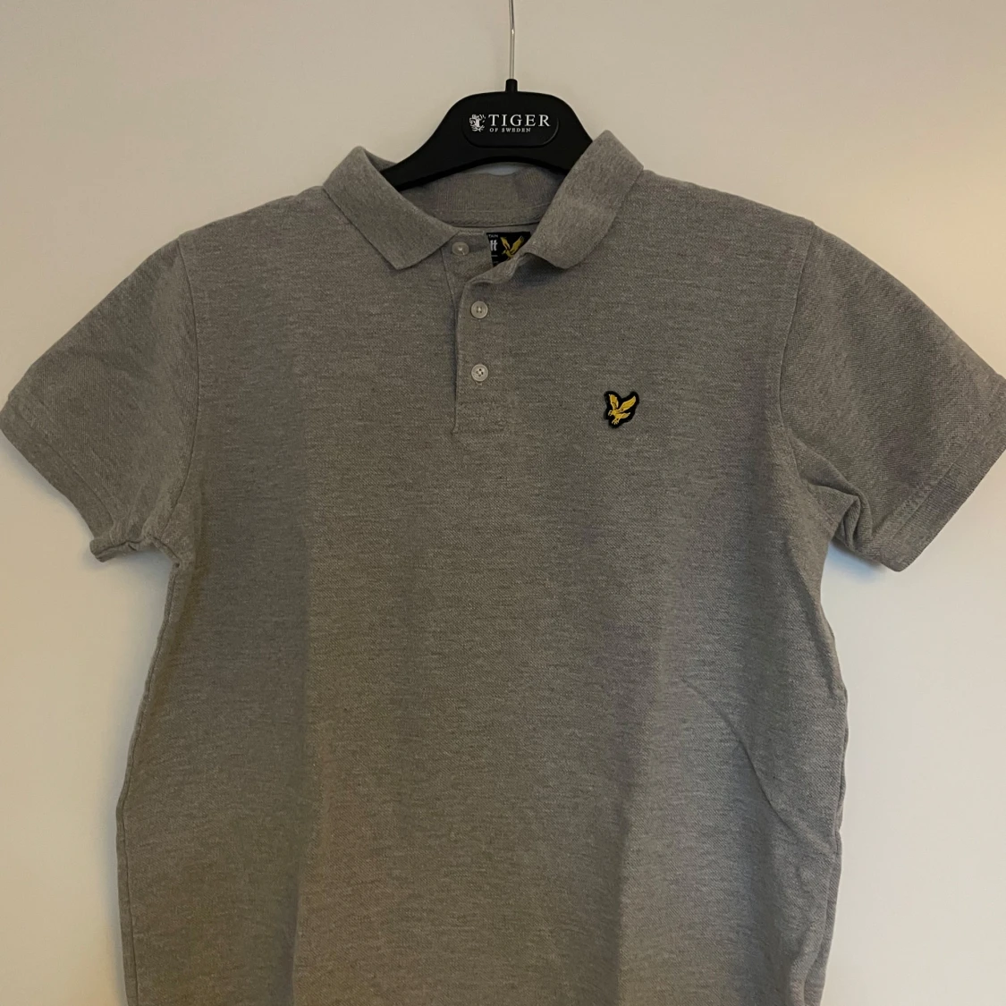 Säljer en stilren grå pikétröja från Lyle & Scott. Tröjan har korta ärmar och en klassisk krage med knappar. Den är dekorerad med det ikoniska Lyle & Scott-logotypen på bröstet. Perfekt för en avslappnad och snygg look. Skick 7/10