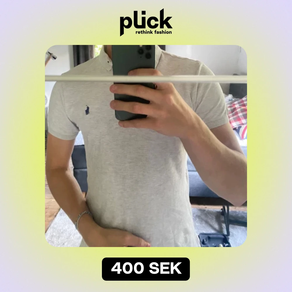 En grå piké från Ralph Lauren med korta ärmar och en liten broderad logotyp på vänster sida av bröstet. piken har en slim fit passform och är tillverkad i ett bekvämt material. jag är 184 men den kan även passa mindre då den är slim