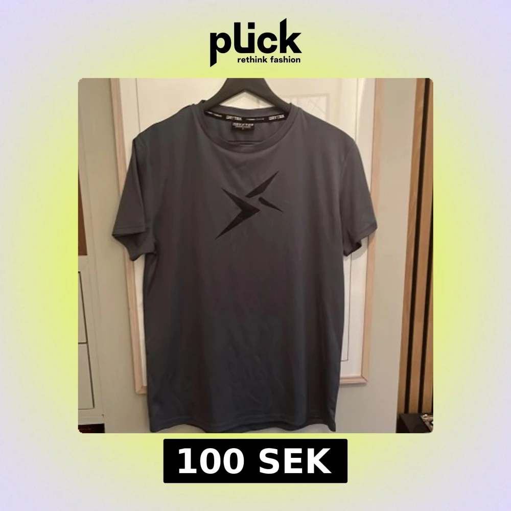 Grå t-shirt från Drytex med svart grafiskt tryck på bröstet. Tillverkad i ett syntetmaterial som andas, perfekt för träning. Klassisk rund hals och korta ärmar ger en clean och sportig look.