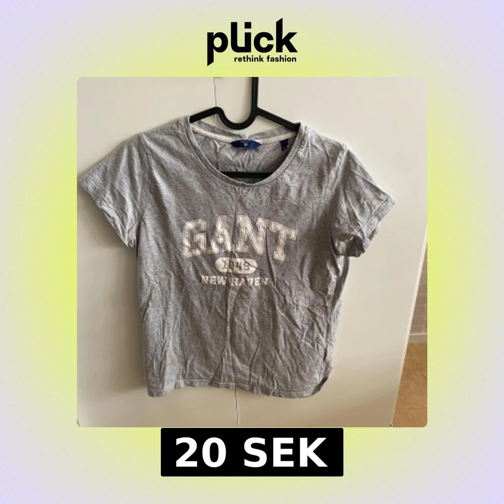 Säljer en grå t-shirt från GANT med tryck framtill. Den har en rund halsringning och korta ärmar. Legat längst in i garderoben ett tag och därför den är skrynklig:)