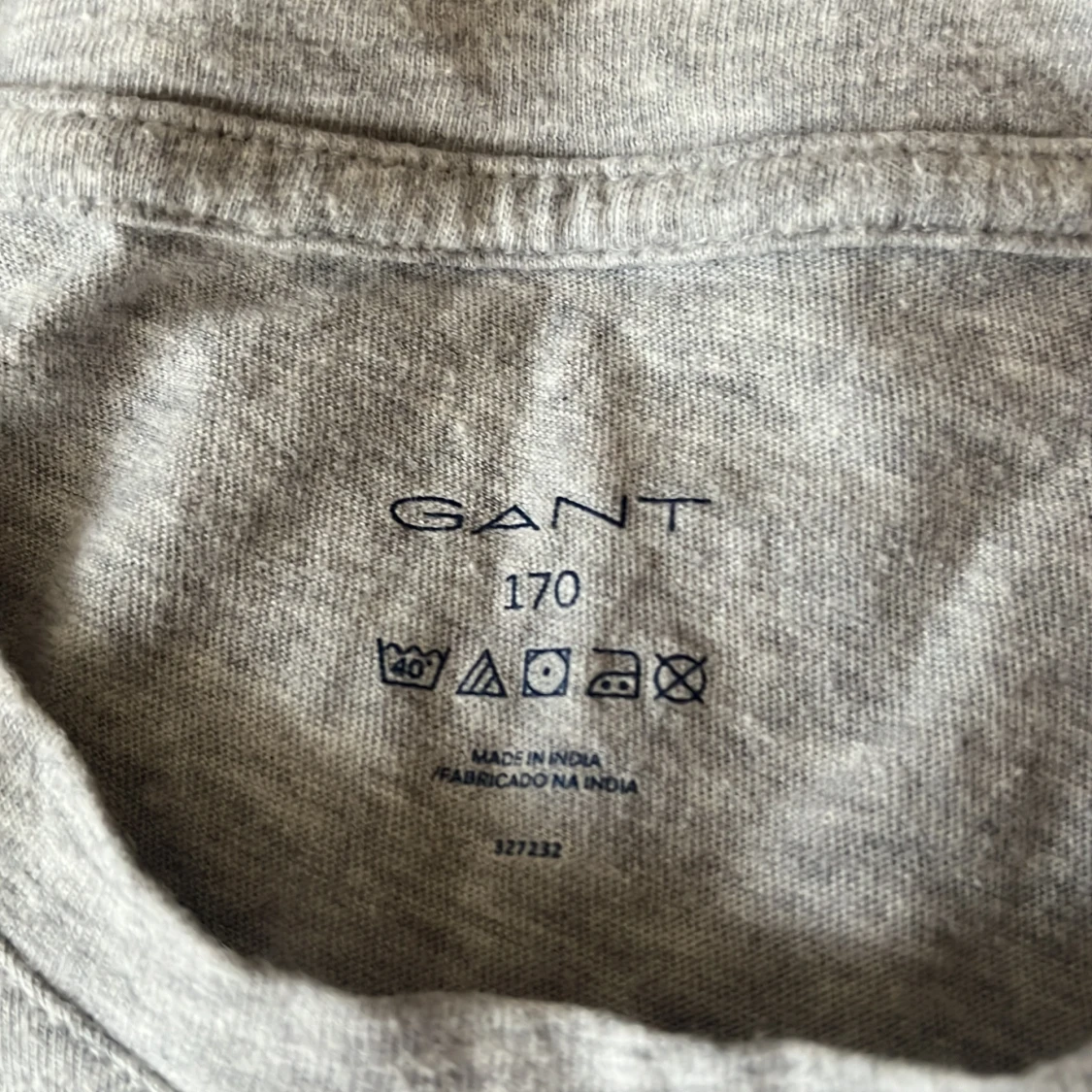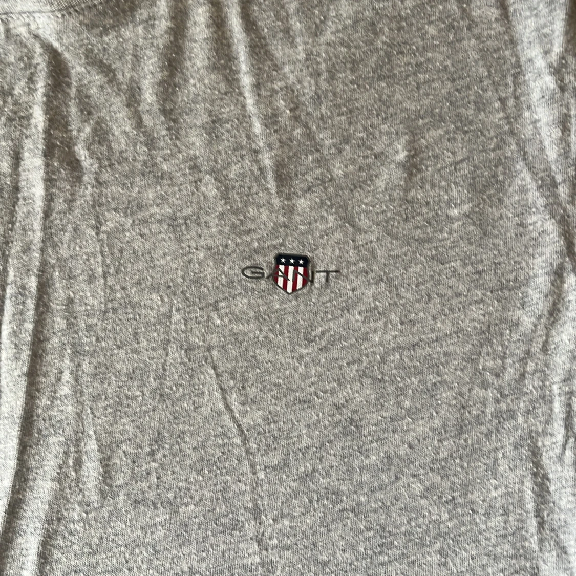 Snygg grå t-shirt från GANT med klassisk rund hals och korta ärmar. På bröstet sitter en liten broderad GANT-logga med sköld i rött, vitt och blått. Mjuk och skön bomull som passar perfekt till jeans eller shorts. Enkel och stilren design.