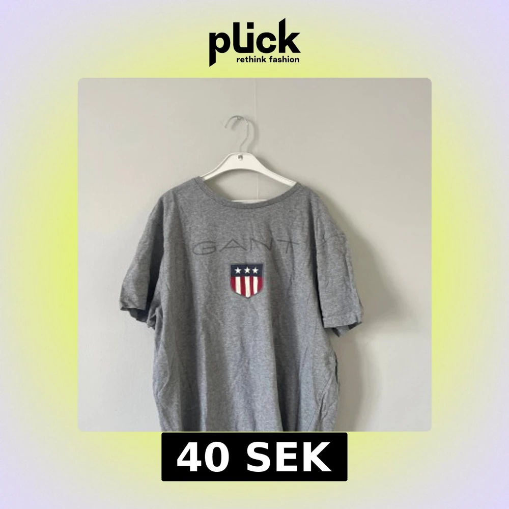 Snygg grå t-shirt från Gant med stort tryck framtill och klassiskt Gant-emblem med stjärnor och ränder.