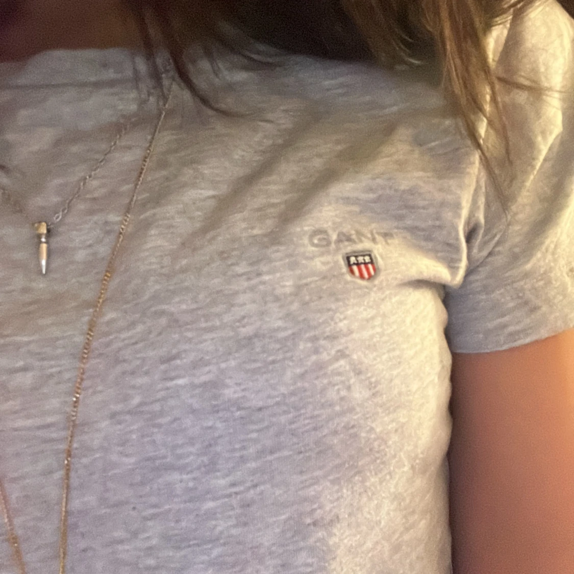 Säljer en grå t-shirt från GANT med korta ärmar och en liten logga. Passar bra till jeans eller shorts. Kontakta för frågor om storlek eller pris💝💕💝💕
