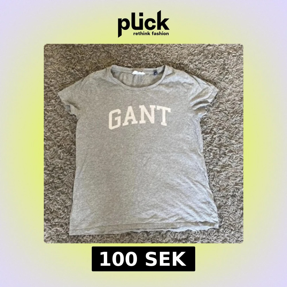 Säljer en grå t-shirt från Gant med vit logga på bröstet. T-shirten har en rund halsringning och korta ärmar. Använd max 5 gånger!💓