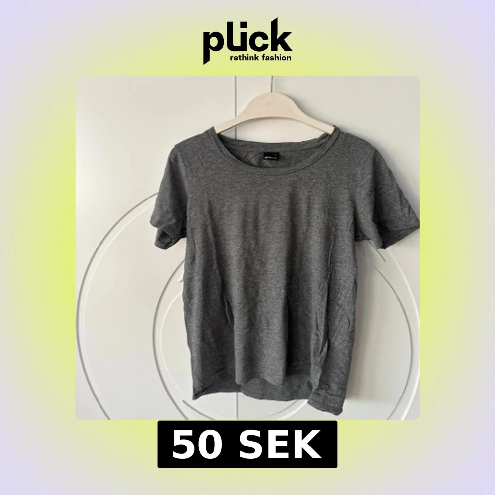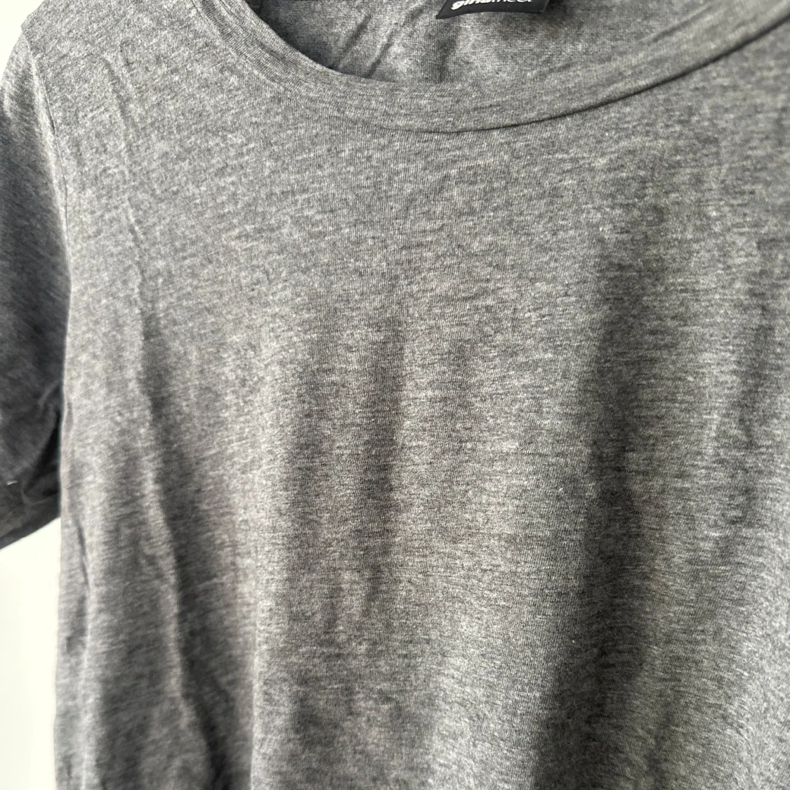 Säljer en enkel och stilren grå t-shirt från Gina Tricot. Perfekt basplagg med rund hals och korta ärmar. Gjord i mjukt material för en bekväm känsla. Passar till alla tillfällen!