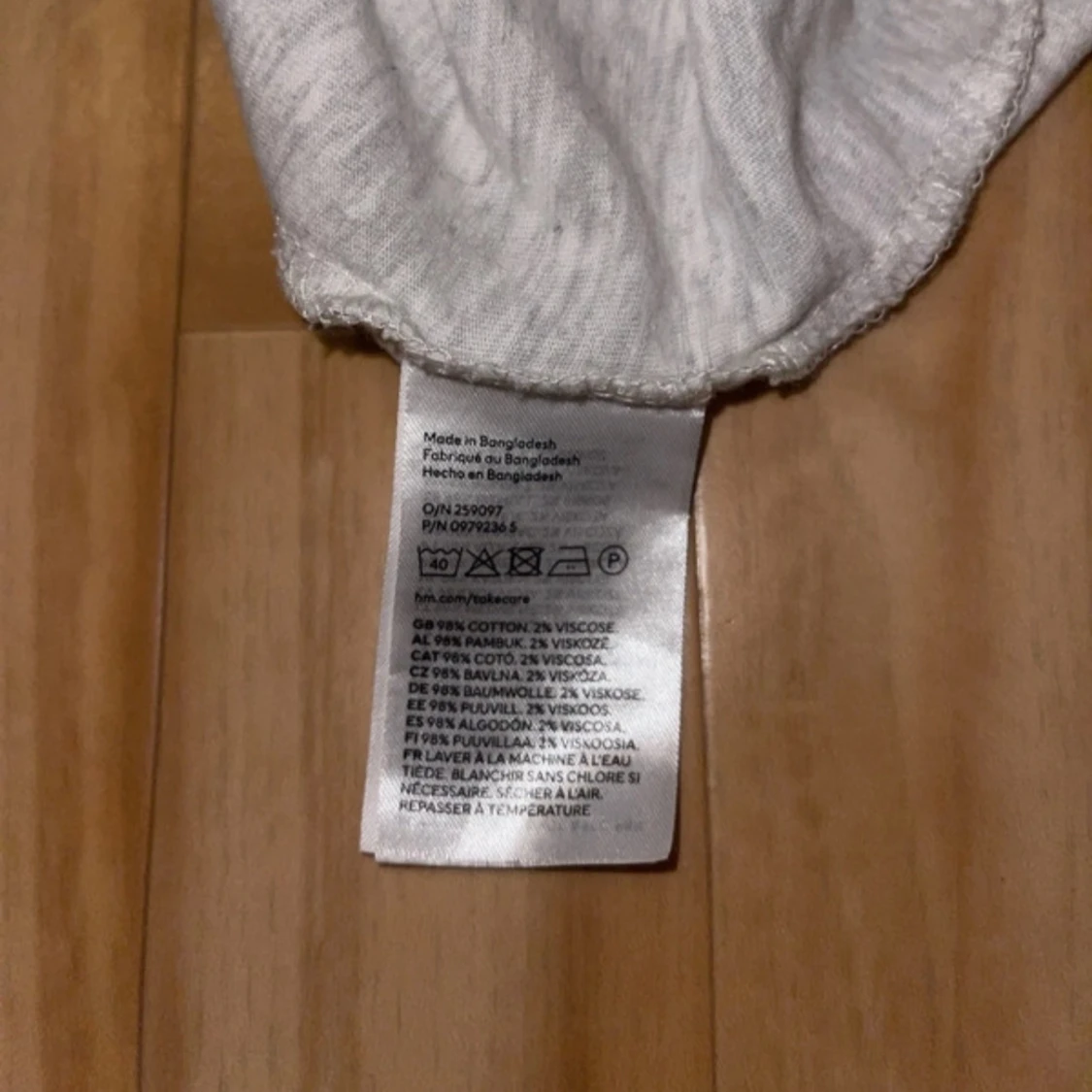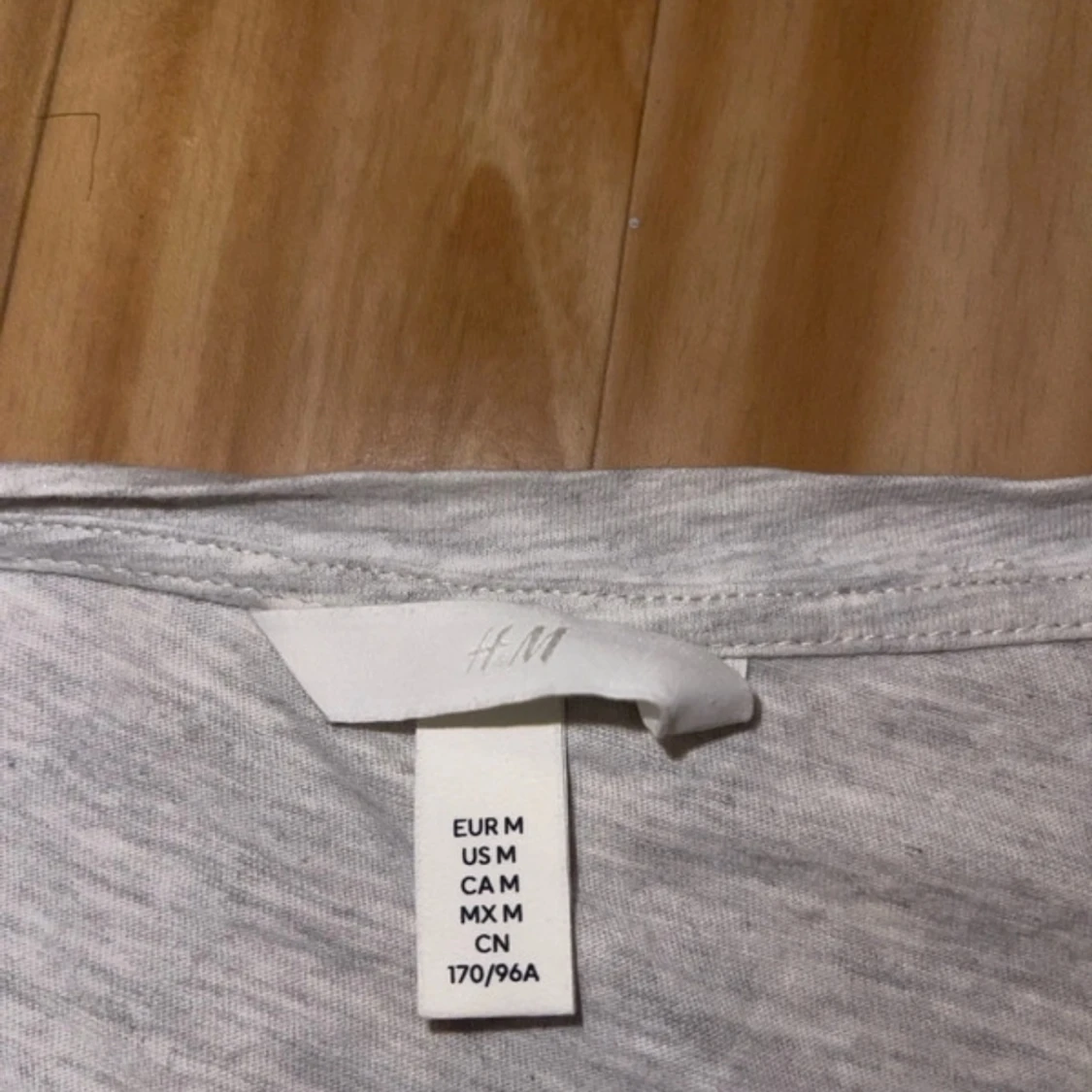 Säljer en klassisk grå t-shirt från H&M i storlek M. T-shirten är tillverkad i en mjuk bomullsblandning och har korta ärmar. Perfekt basplagg för alla tillfällen.