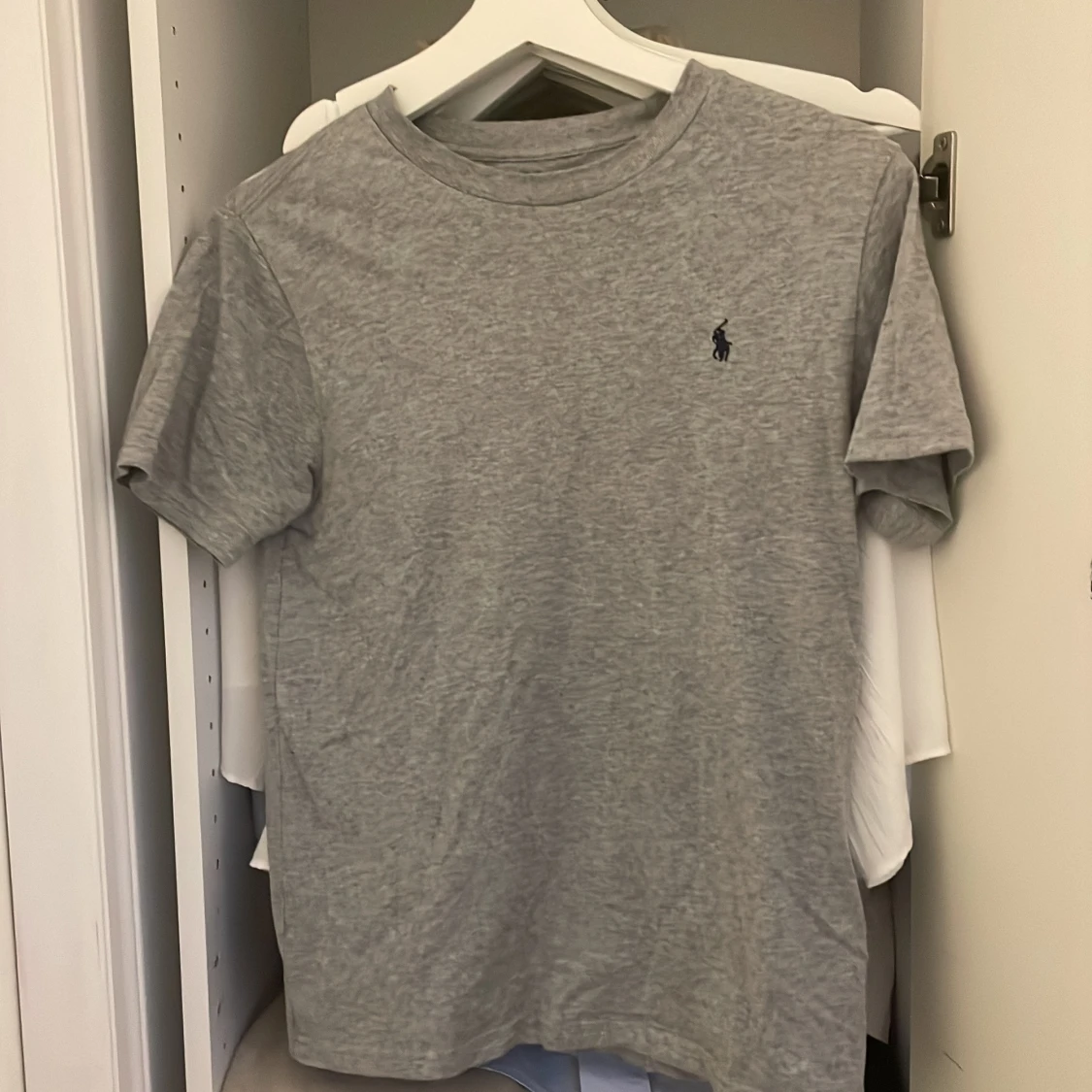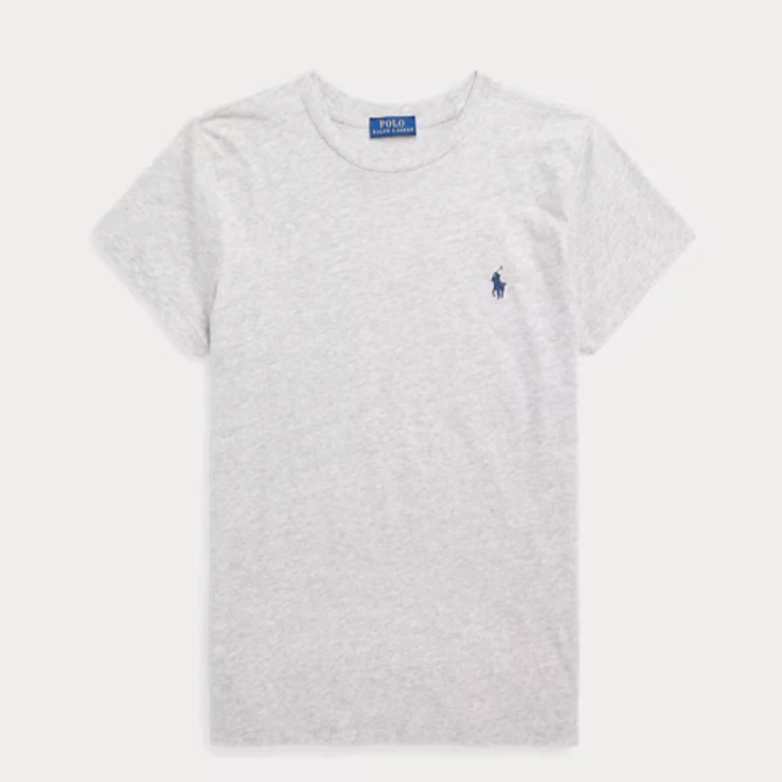 Klassisk grå t-shirt från Polo Ralph Lauren med korta ärmar och rund hals. T-shirten har en liten mörkblå broderad logga på bröstet och är gjord i mjuk bomull. Perfekt basic-plagg med clean look och skön passform.