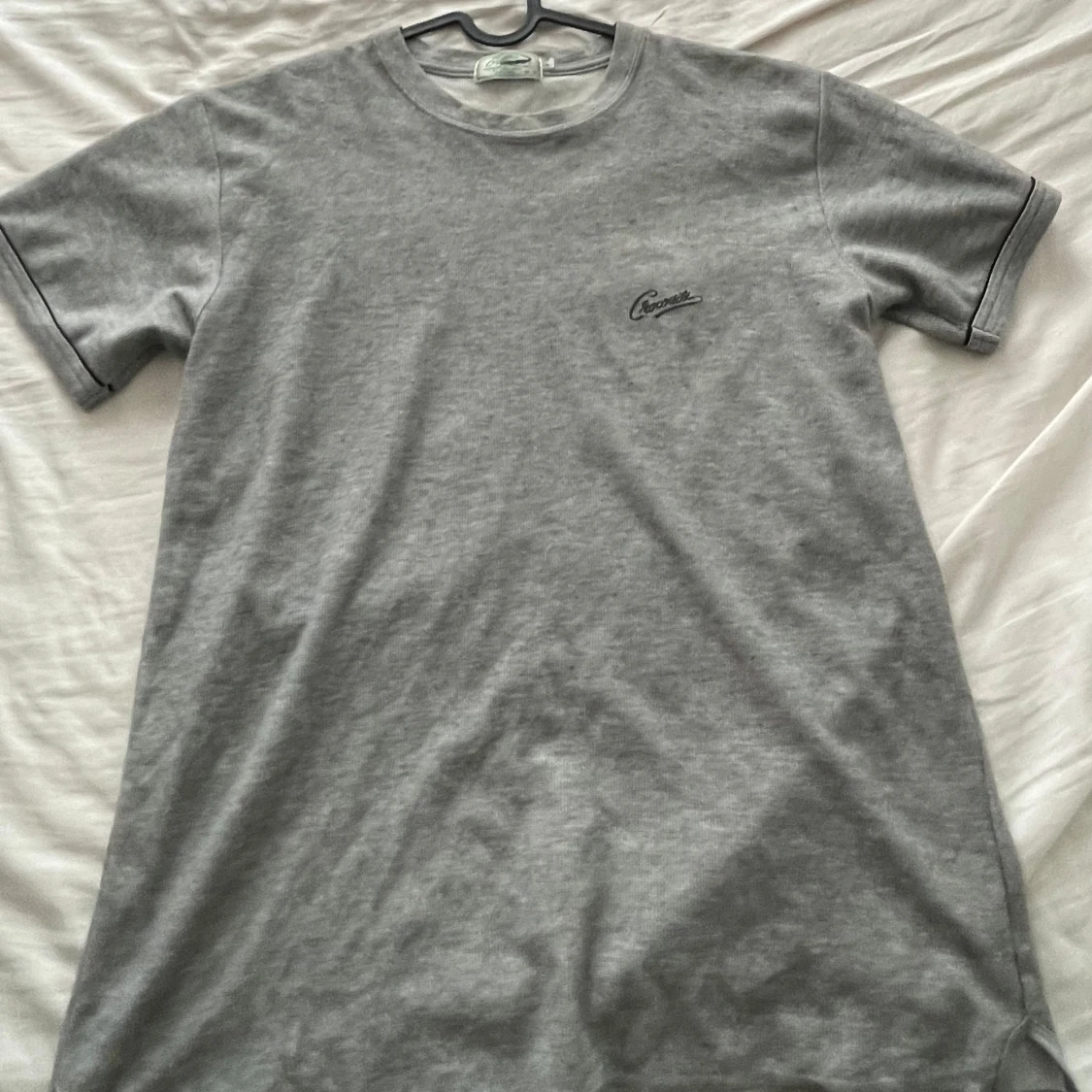 Säljer en stilren grå t-shirt från Crocodile i storlek M. Den är gjord av mjukt bomullsmaterial och har en liten logga på bröstet. Perfekt för en avslappnad vardagslook!