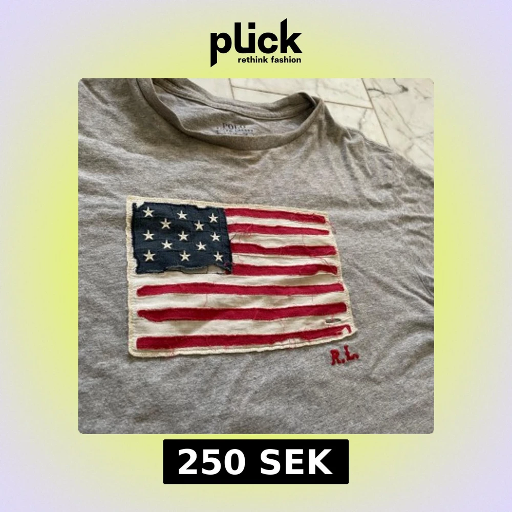 Säljer en grå t-shirt från Polo Ralph Lauren med en broderad amerikansk flagga på framsidan. T-shirten har korta ärmar och en rund halsringning. Den i barnstorlek L men passar en xs-s jätte bra säljer då den inte kommer till någon andvändning. Finns inga fler bilder🩷🩷