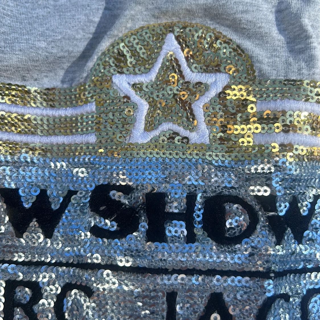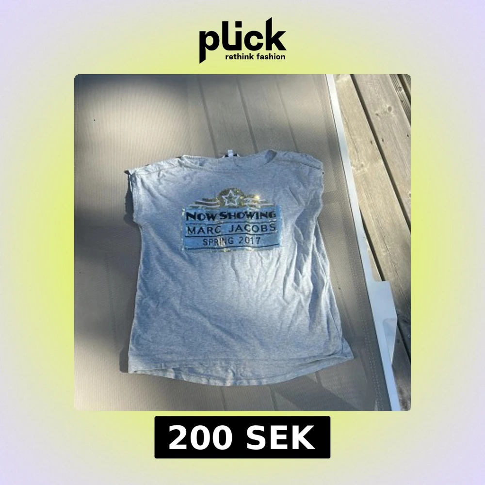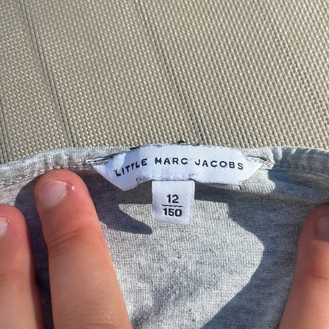 Snygg grå t-shirt från Little Marc Jacobs med coolt paljettmotiv i silver och guld framtill. T-shirten har korta ärmar och ett statement-tryck med texten 'Now Showing Marc Jacobs Spring 2017'. Mjuk bomullskvalitet och relaxed fit. Ny pris ligger på 890kr
